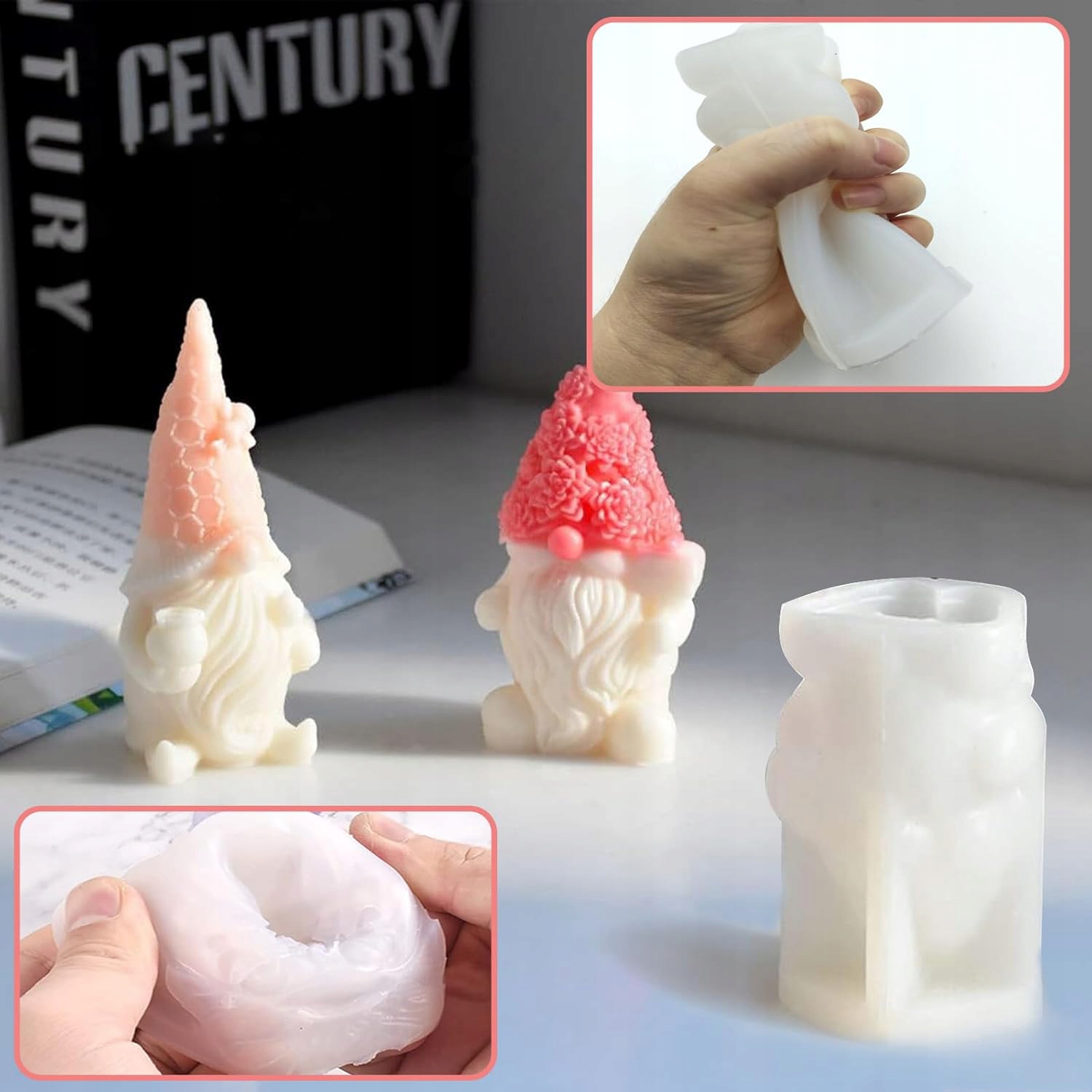 Форма Санта-Клауса без обличчя виготовлена з харчового силікону. Форми для свічок Gnome не деформуються, міцні, м'які та легко знімаються. Товстий, міцний і еластичний.