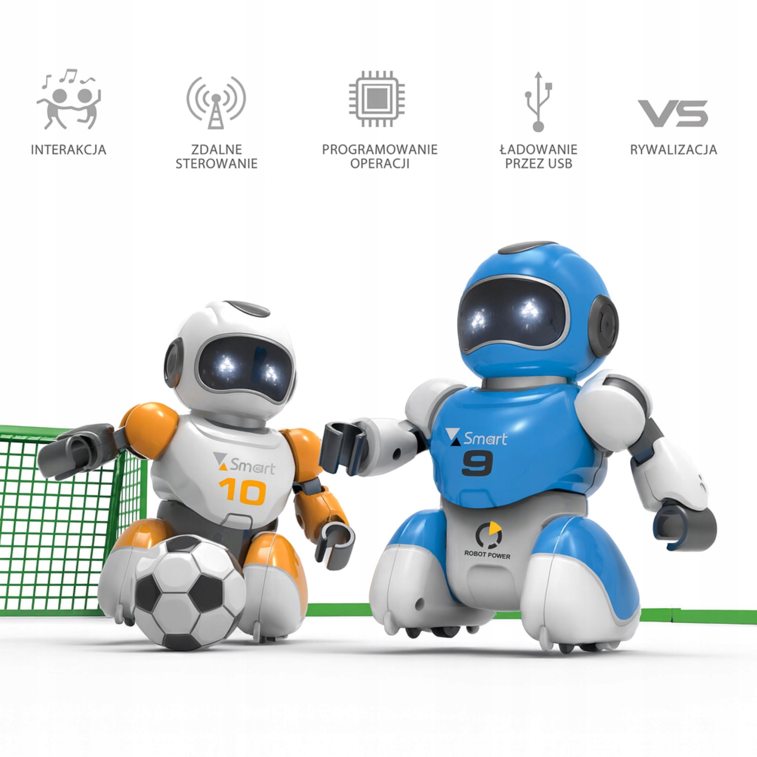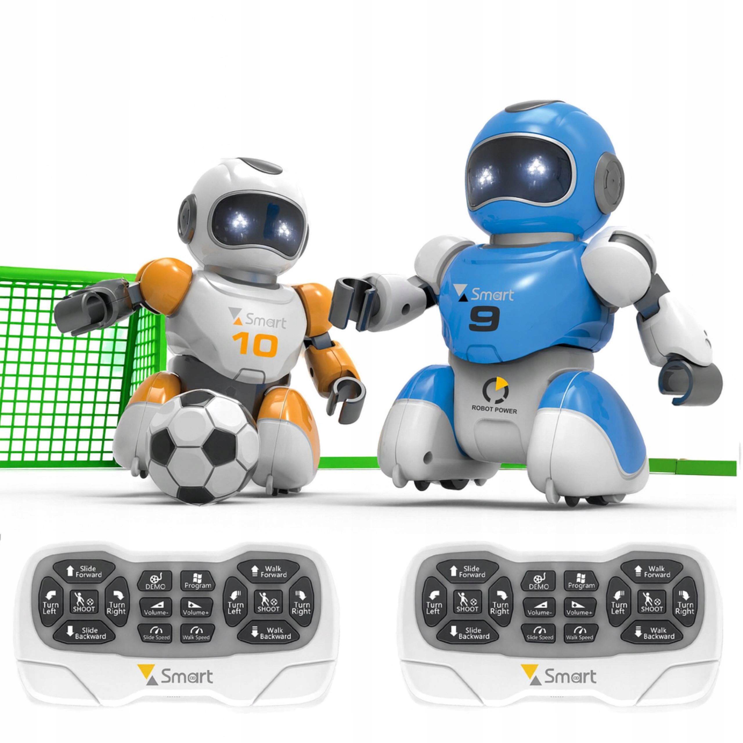 Набір із двох інтерактивних футбольних роботів з дистанційним керуванням, які забезпечують динамічні розваги та змагання. Ідеальний подарунок для дітей, які люблять роботів, футбол і сучасні технології.