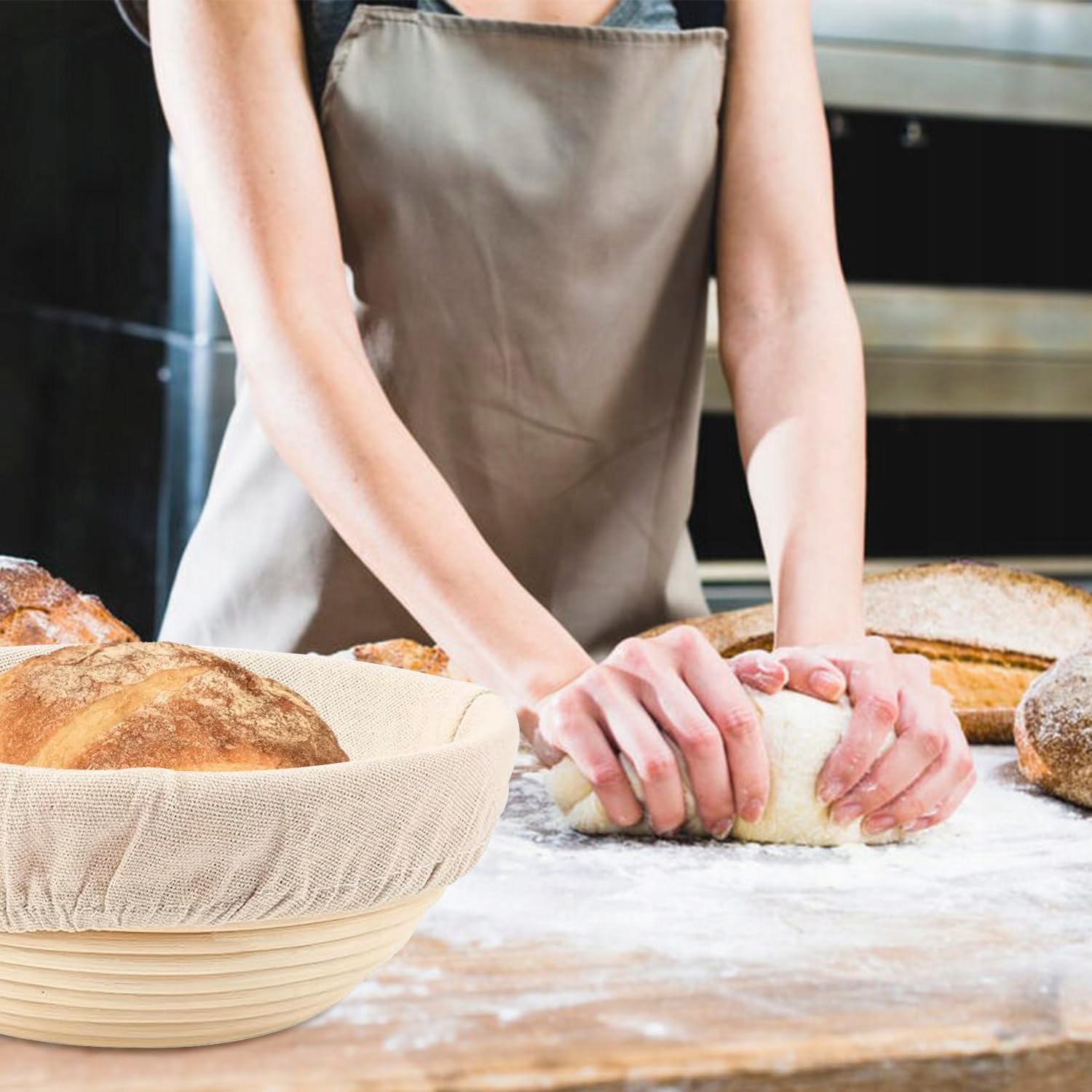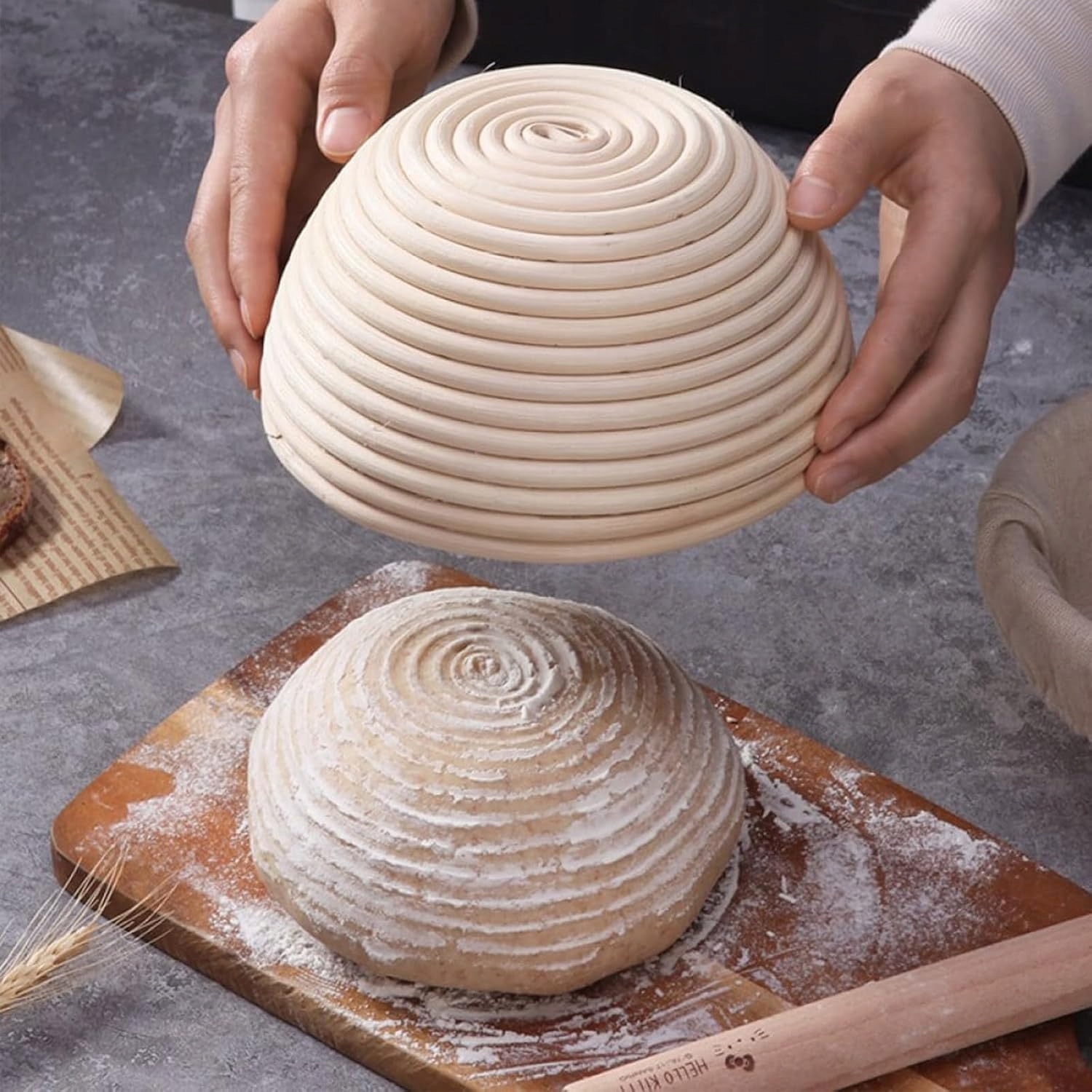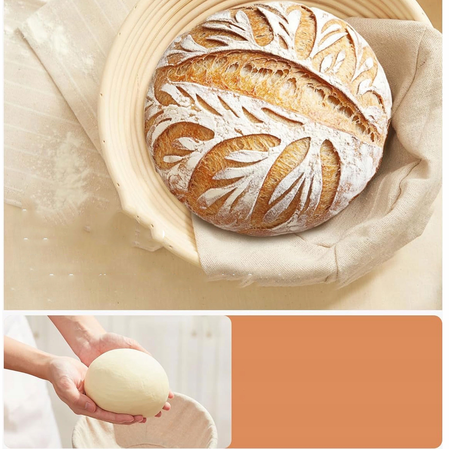 Високоякісні безпечні матеріали: наші 9-дюймові кошики для розстоювання тіста виготовлені зі 100% натурального індонезійського ротанга, мають гладку поверхню та не залишають жодних сколів. Вони постачаються з лляною підкладкою, яку можна прати, і ножем для різьблення, який дає змогу гладко формувати тісто та вирізати красиві візерунки.