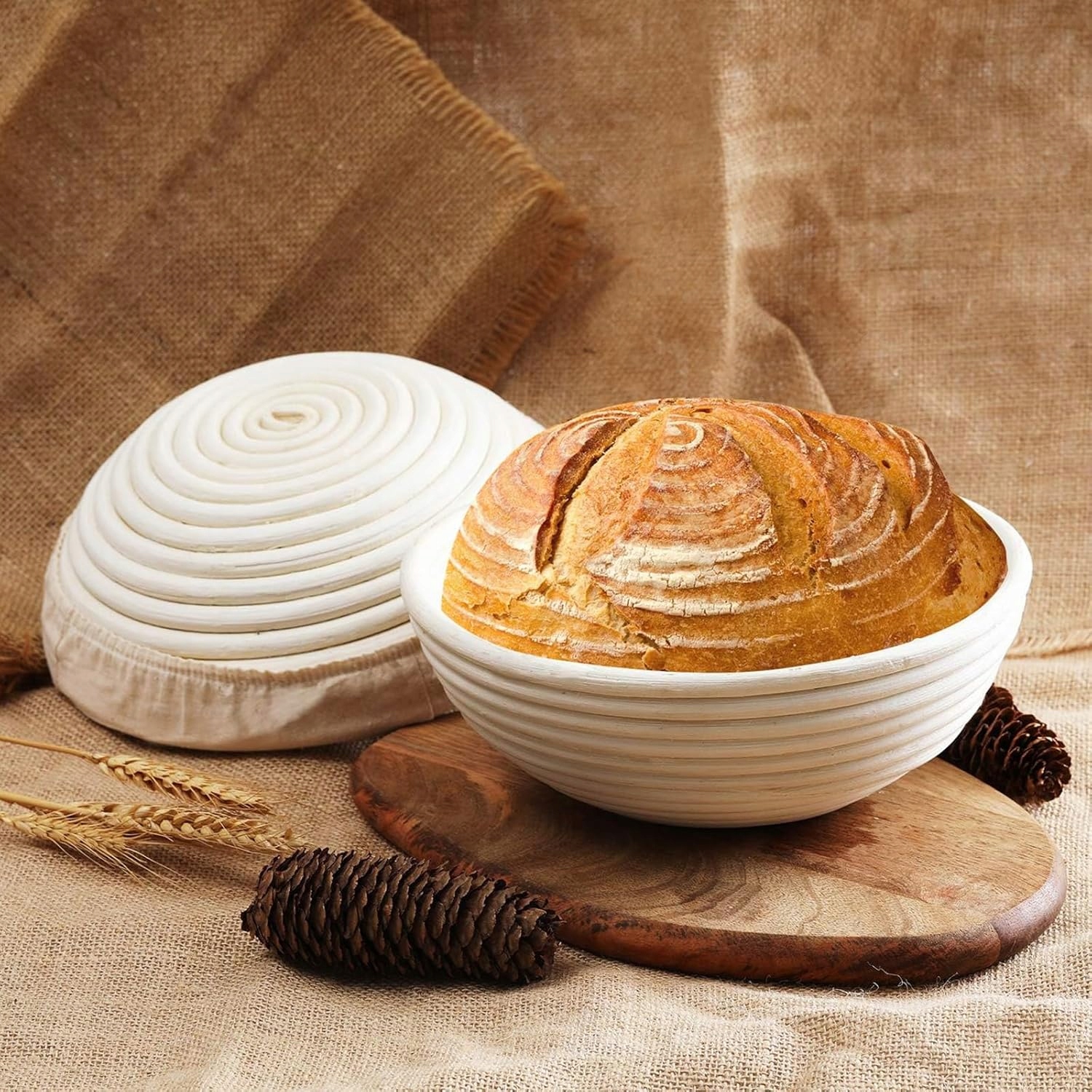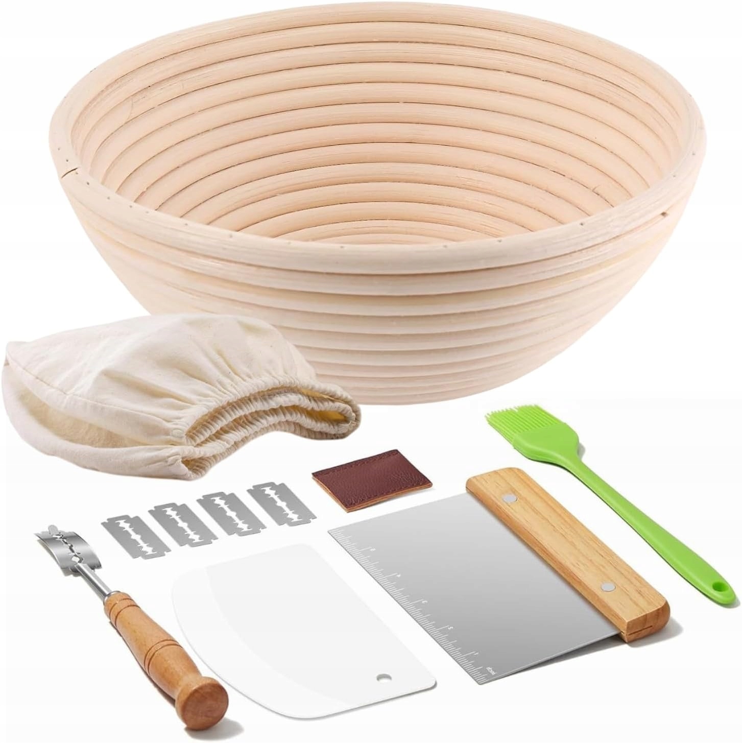 Повний набір для випікання - набір для всіх ваших потреб, особливо підходить для пекарів-початківців. У набір входять 2 круглі кошики для бродіння (з лляною підкладкою), збивач для яєць, ніж для хліба з 4 лезами, пластикова лопатка та лопатка з нержавіючої сталі. Це зробить приготування хліба на заквасці легким і приємним.