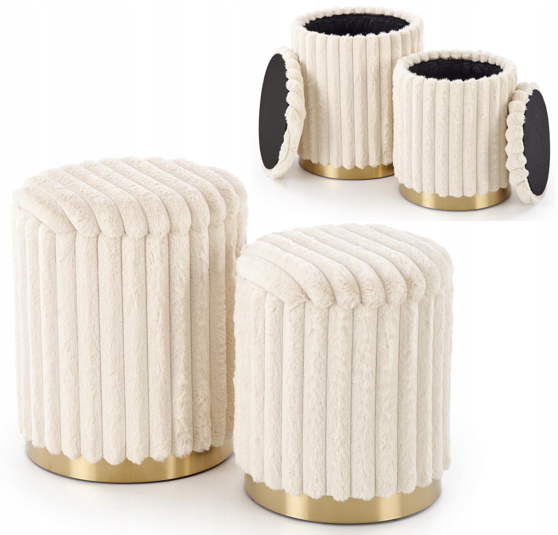 НАБІР З 2 ПЛЮШЕВИХ ПУФІВ FIDO HALMAR VELVET CREAM GOLD З ВІДКРИТТОМ КРИШКА ДЛЯ ЗБЕРІГАННЯ