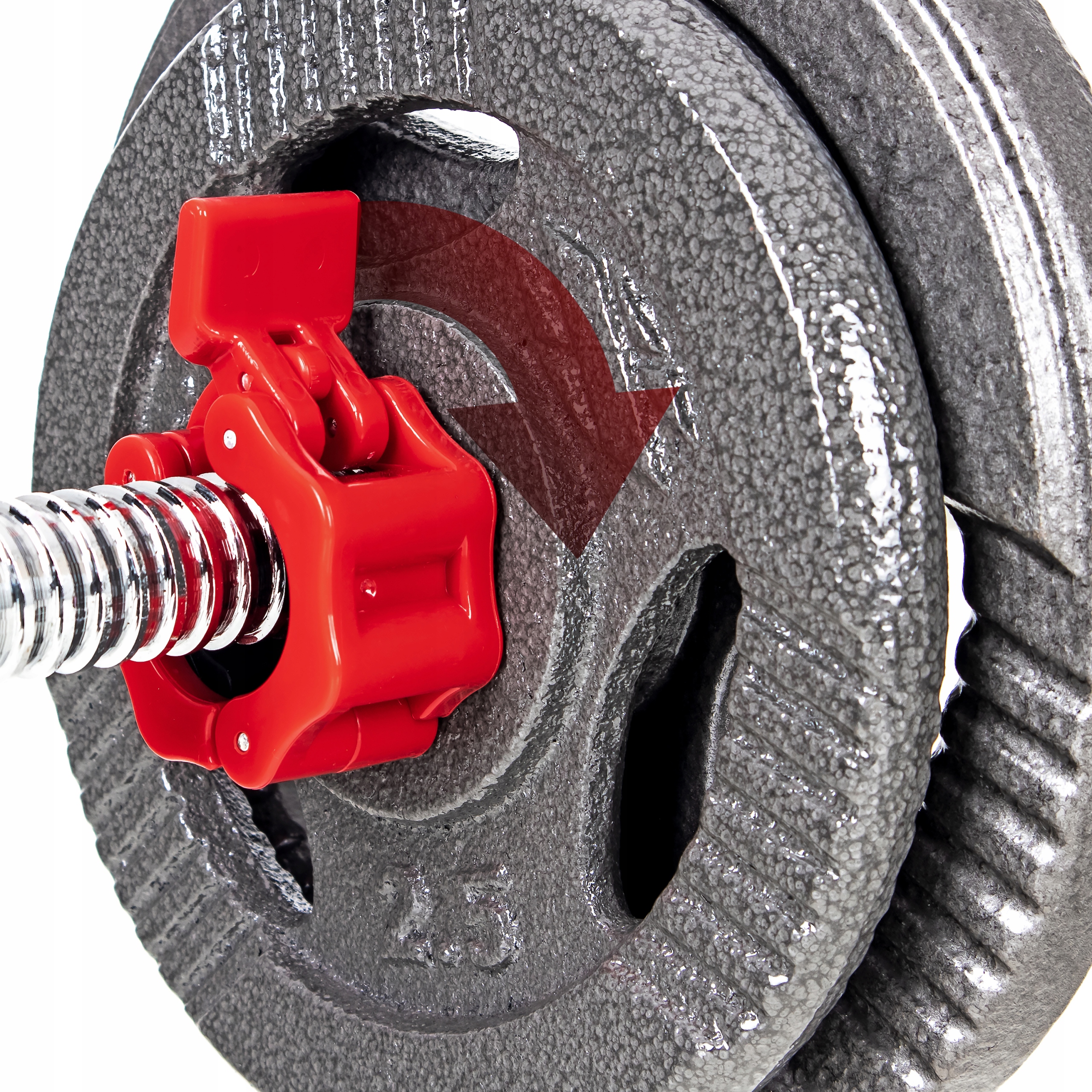 - Наші затискачі підходять практично для всіх типів 28-міліметрових брусків - як з різьбовою частиною для тягарців, так і з гладкою. li>< /ul>