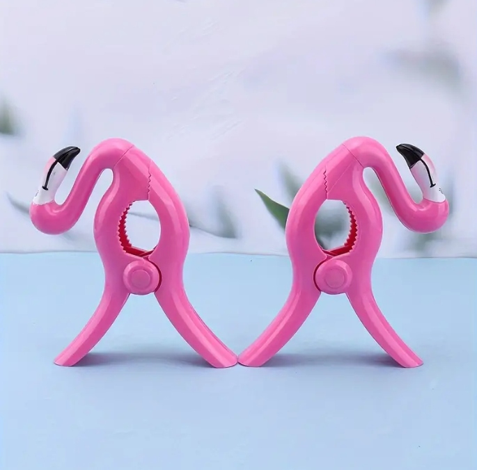 Кольорові затискачі у формі фламінго з радістю стежать за вашим пляжним рушником, коли ви вирішите пірнути у воду. Завдяки надійному затискному механізму він надійно утримає рушник на шезлонгу, не даючи йому зісковзнути або віднести вітром.