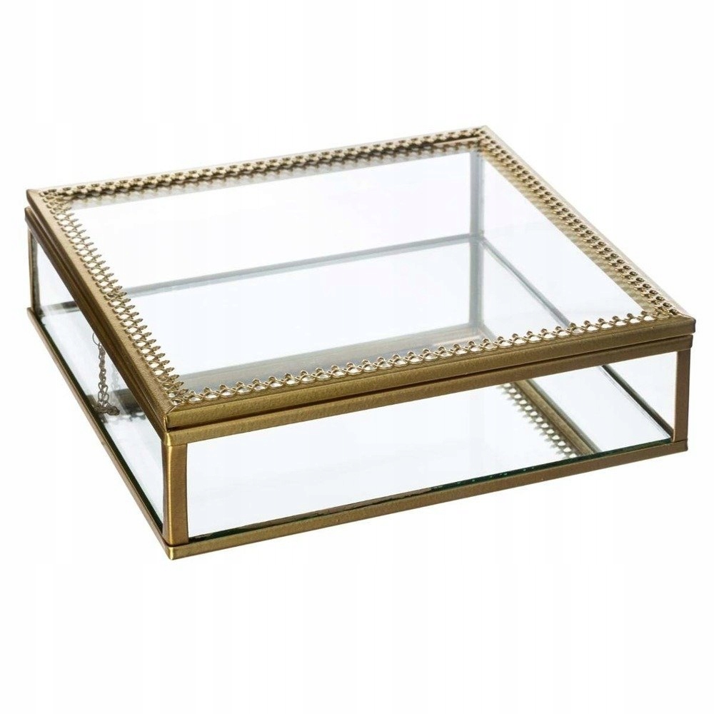 Коробки виготовлені з матеріалів найвищої якості, що забезпечує довговічність виробу протягом багатьох років. Кожен виріб має різні розміри - менший 4 x 15 x 15 см і більший 5,5 x 18 x 18 см. Поєднання скла і металу золотого кольору надає виробам неповторний характер. Елегантні шкатулки для прикрас неодмінно задовольнять навіть найвимогливіших жінок.