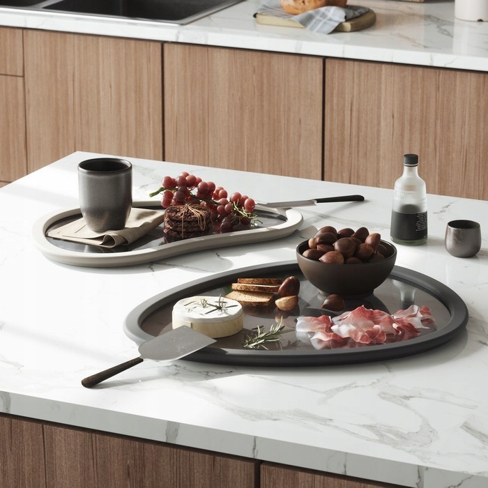 Цей набір з двох TAC має гумовий ободок і затемнене скло з унікальною органічною формою. Рим збільшує довговічність і в той же час сприяє передачі лотків. Лотки для матових лотків не повинні використовуватися лише для подачі, вони також можуть використовуватися як центральний елемент, для парфумів, свічок, прикрас і не тільки.