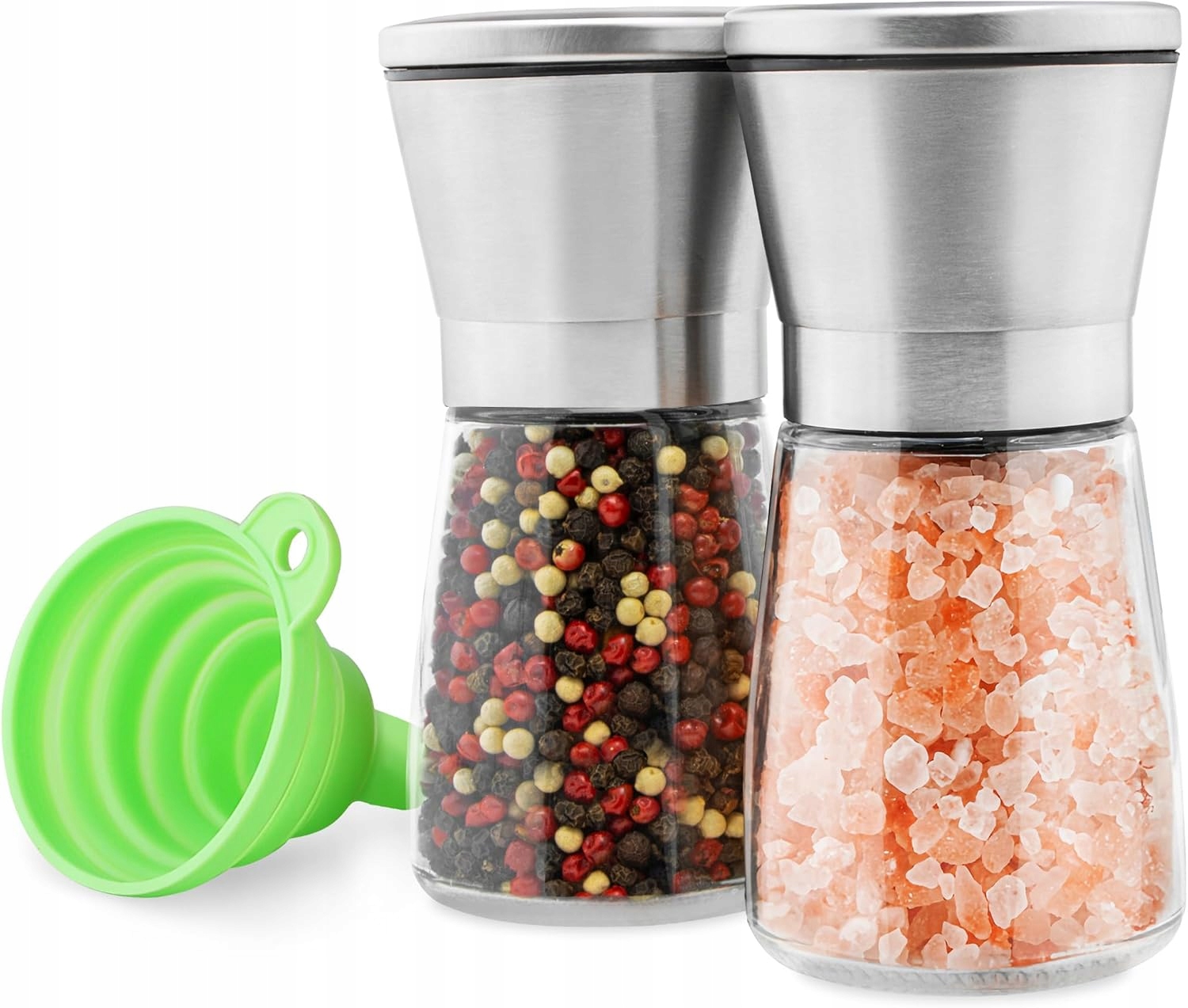 Механізм шліфування морської солі з можливістю повторного заповнення зверху, запобігаючи сіллю і перцю впасти на стільницю. Верхня ковпачка щільно закрита, щоб спеції сухими. Пляшка забезпечує зручну ручку шліфування.