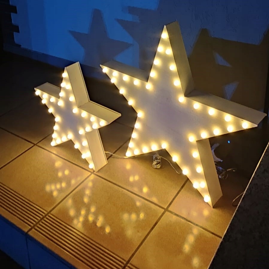 Набір з 2 світлодіодних зірок для прикраси фотосесії дерев'яних великих та маленьких