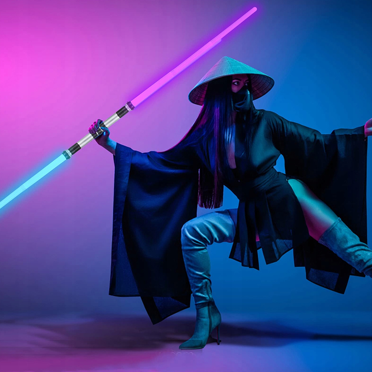 - З 2 мечами та 1 подвійним лезом, подвійним шарніром. Натисніть нижній перемикач, щоб активувати режим миготіння, який супроводжує звуки бійки.