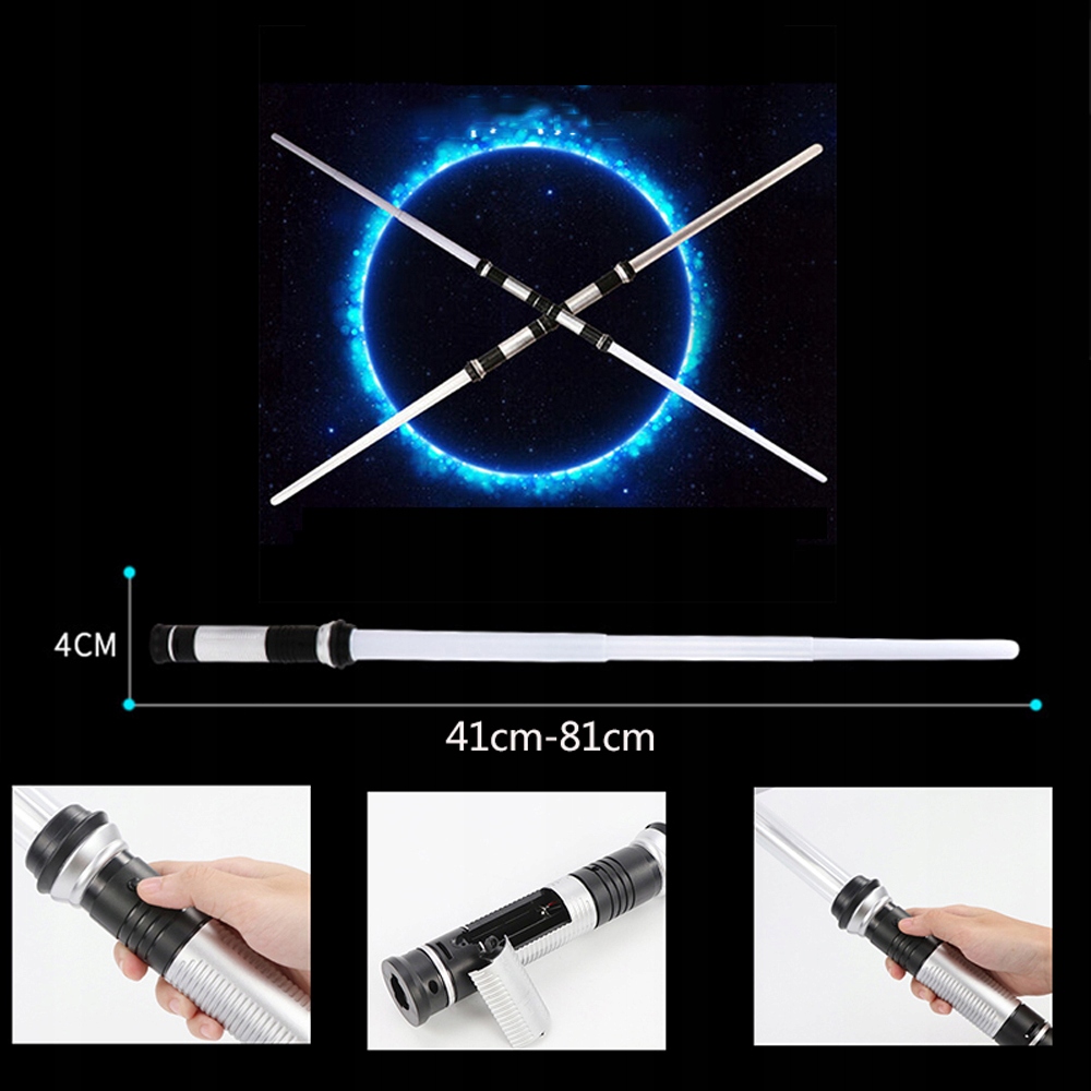 ⚔️⚔️ ⚔️【Розсувний лазерний меч】Світловий меч можна використовувати як два окремих світлові мечі або як один довший світловий меч. Довжина одиничного скорочення становить 41 см, довжина розтягнутого 81 см, загальна довжина 162 см. Оснащений легкими для захоплення ручками та змінною довжиною, він забезпечить вам і вашим дітям розваги та різноманітні враження, які ви бажаєте, додаючи веселості дитинства.