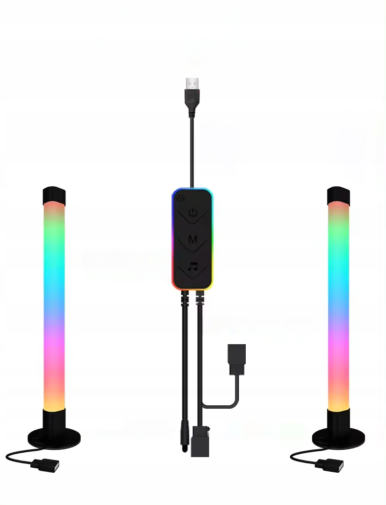- На основі аналізу звуку світлодіодна стрічка створює динамічні світлові ефекти, які можуть змінювати колір, яскравість і візерунки відповідно до ритму музики. Ці ефекти можуть відрізнятися залежно від налаштувань, вибраних у програмі.