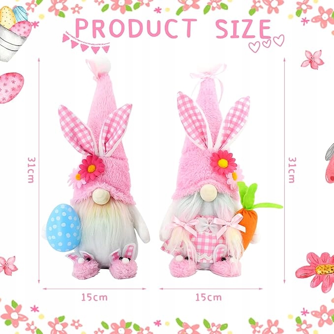 Великодні гноми чудово підійдуть для прикраси вітальні, спальні, офісу чи саду. Їх можна розмістити на столах, полицях або повісити на двері, вікна та стіни.