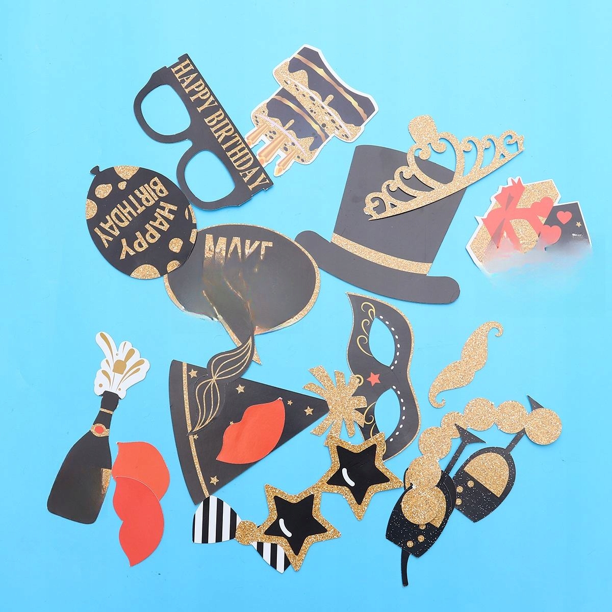 Набір з 21 частини прикрас для фотографій з окулярами на день народження із золотими вусами