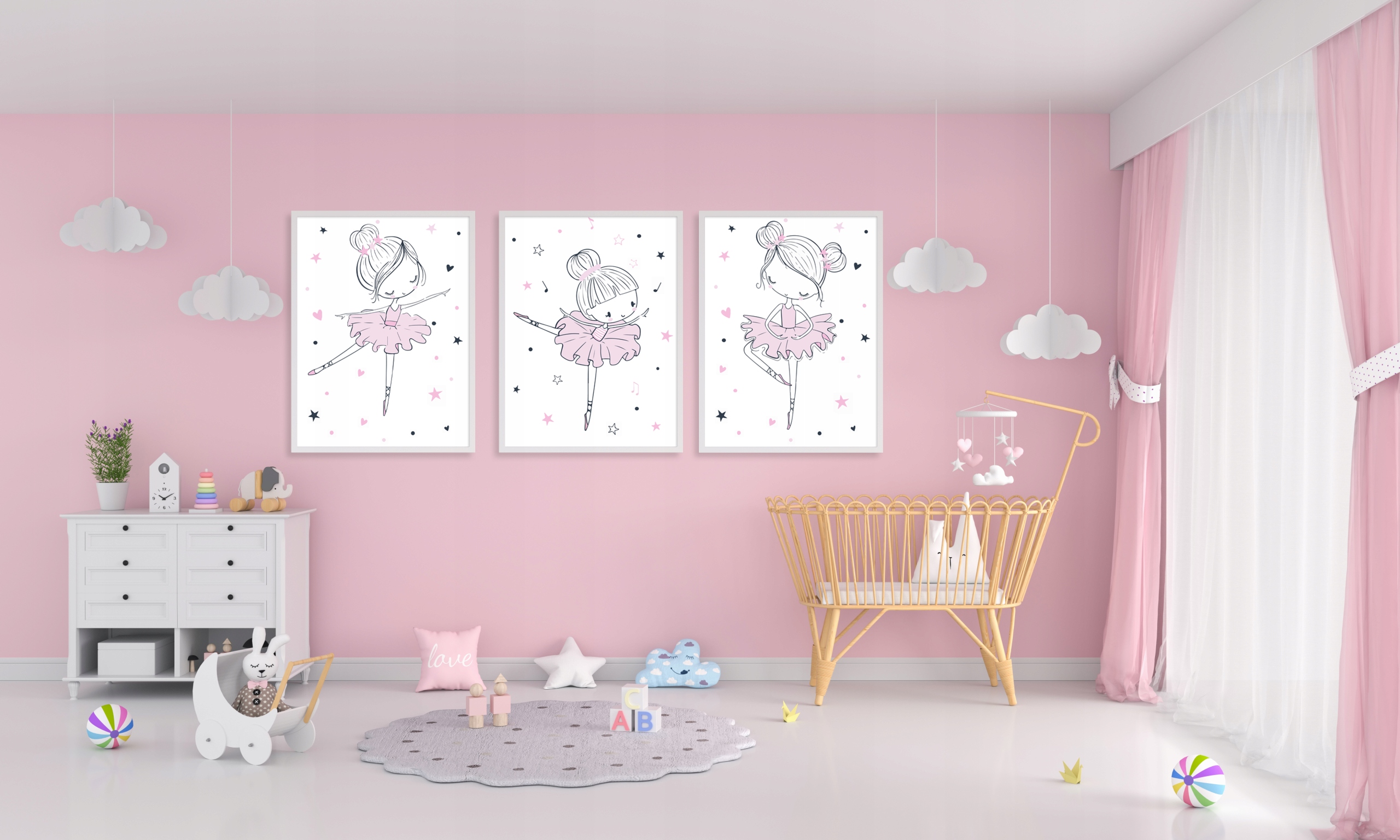 Набір з 3 картинок плакати для дітей A4 балерина