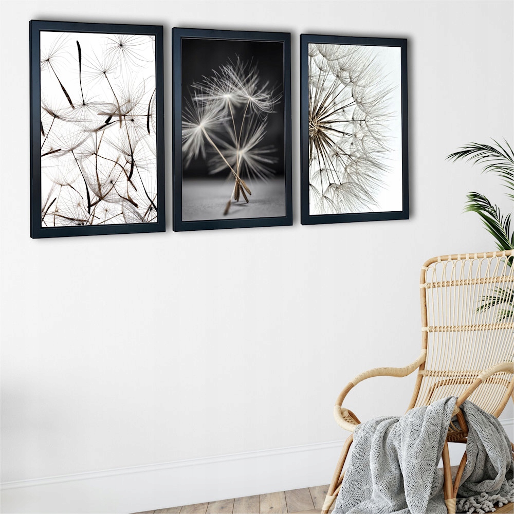 Набір містить 3 дуже цікаві фотографії кульбаб. Картини, надруковані на професійній цифровій машині, в чорних дерев'яних рамах. Набір готовий до висіння на стіну.