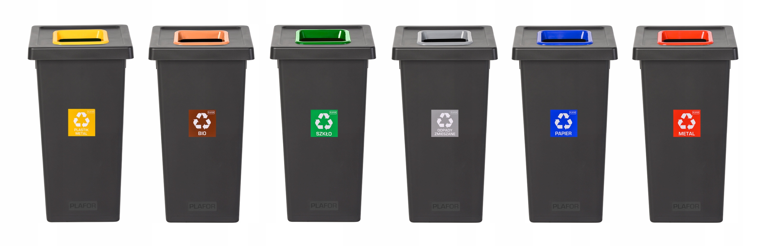Набір із 3 баків об’ємом 75 літрів таких кольорів: СИНІЙ – папір, ЗЕЛЕНИЙ – скло та ЖОВТИЙ – пластик