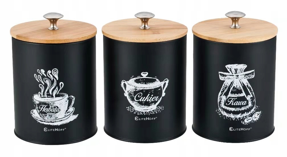 Modern containers aesthetic appearance Practical storage saving space on the countertop Possibility to set one on top of the other made of steel bodies in a warm white color covered with a bamboo covered with bamboo cover with harmony and elegance