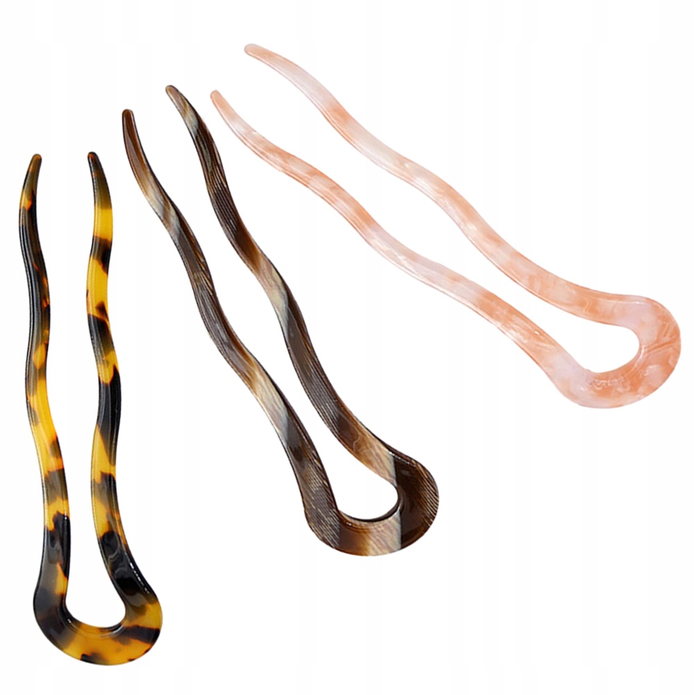 Набір з 3 міцних шпильок для волосся у формі літери U з ацетату. Елегантні тримачі для пучка.