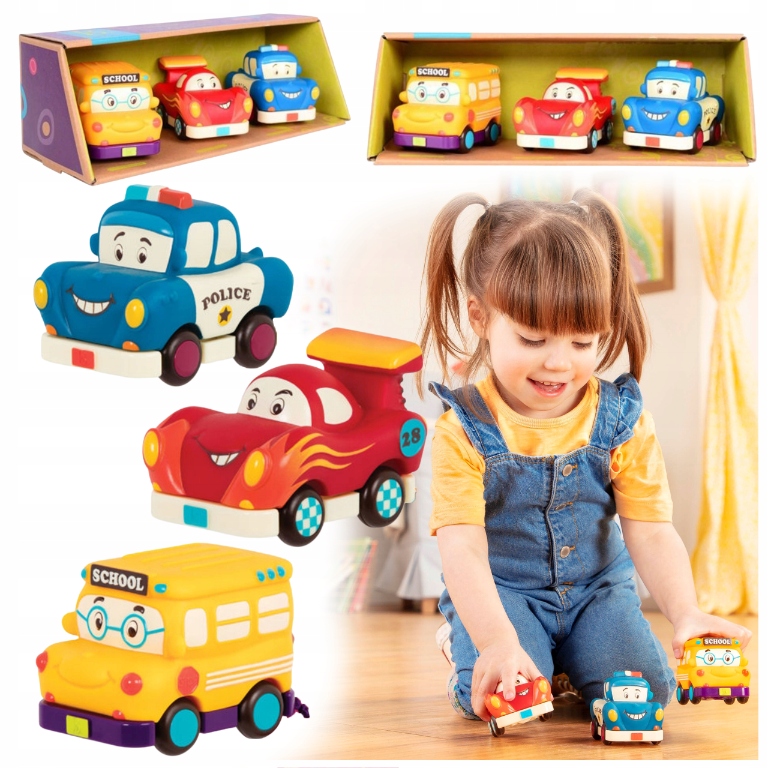 b.tysis mini wheeee-ls! -це три життєрадісні міні-машини з приводом, спинним приводом . Потягніть назад і відпустіть - машини кидаються вперед, заохочуючи малюка до повзання, повзання та бігу .