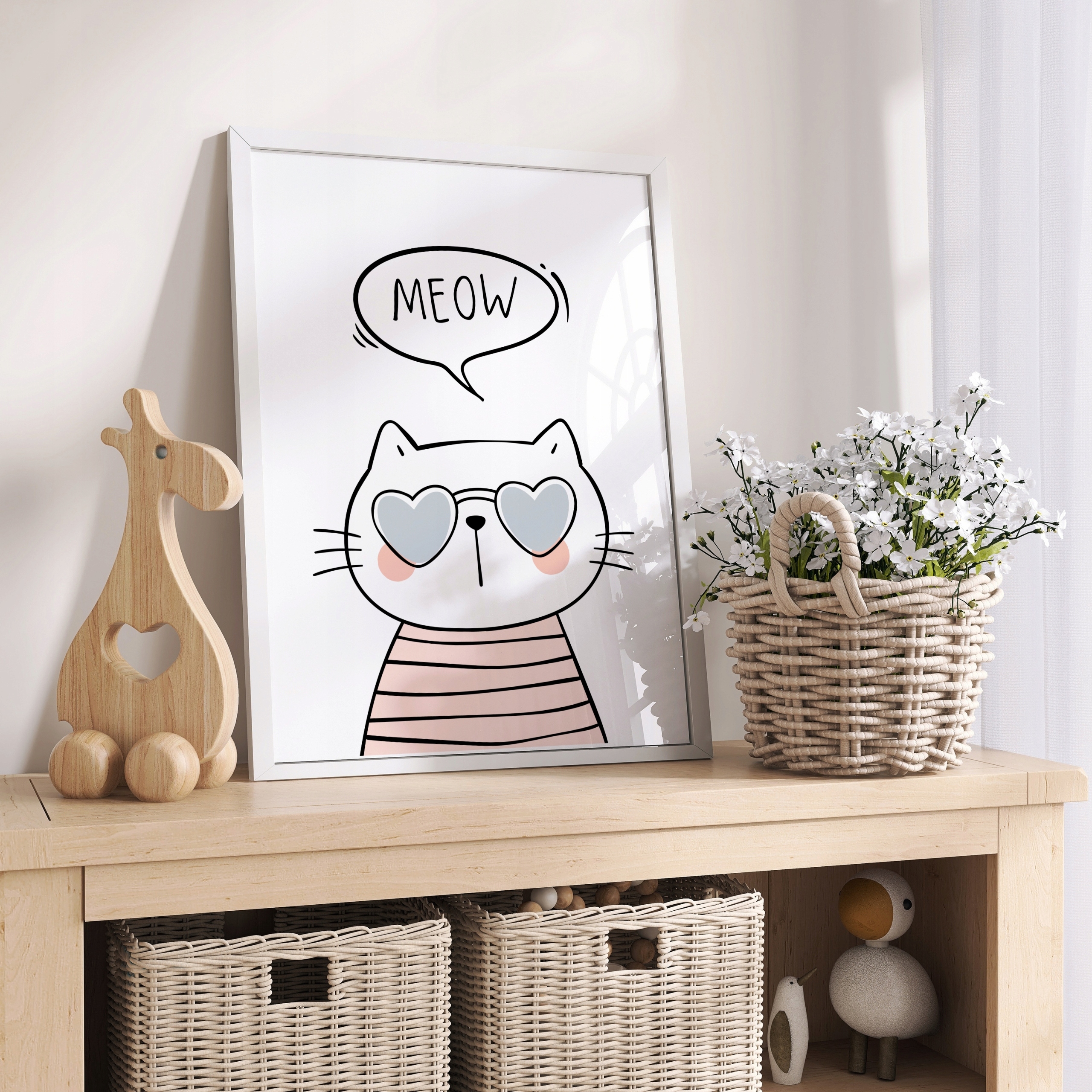- Колекція постерів із милими кошенятами — чудовий спосіб додати інтер’єру затишку та чарівної атмосфери.