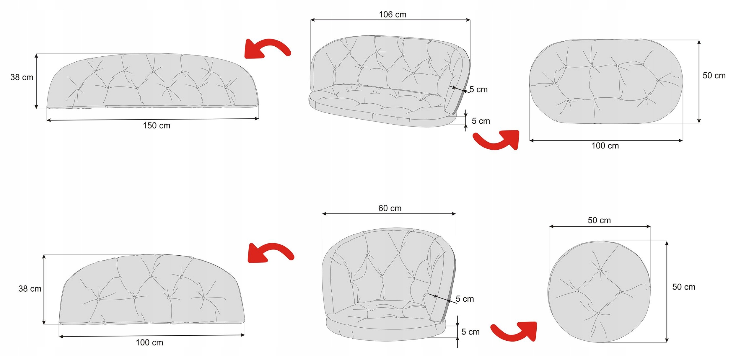 - 2x набір подушок для одномісного крісла, розміри 50x50x38 см ,