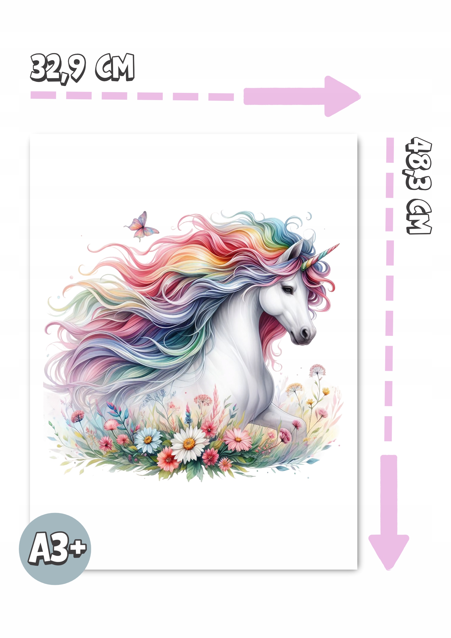 Набір з 3 постерів А3+ Персоналізація імені дитини єдиноріг, дівчинка
