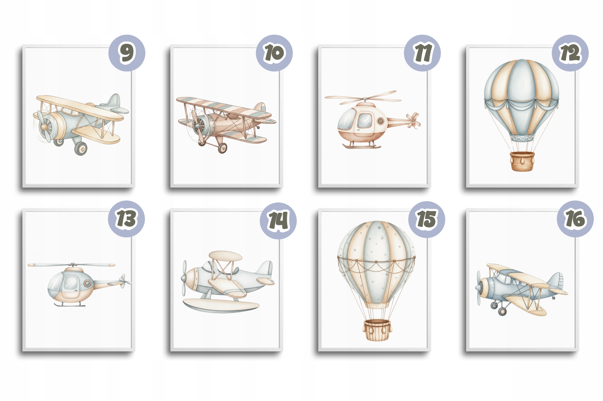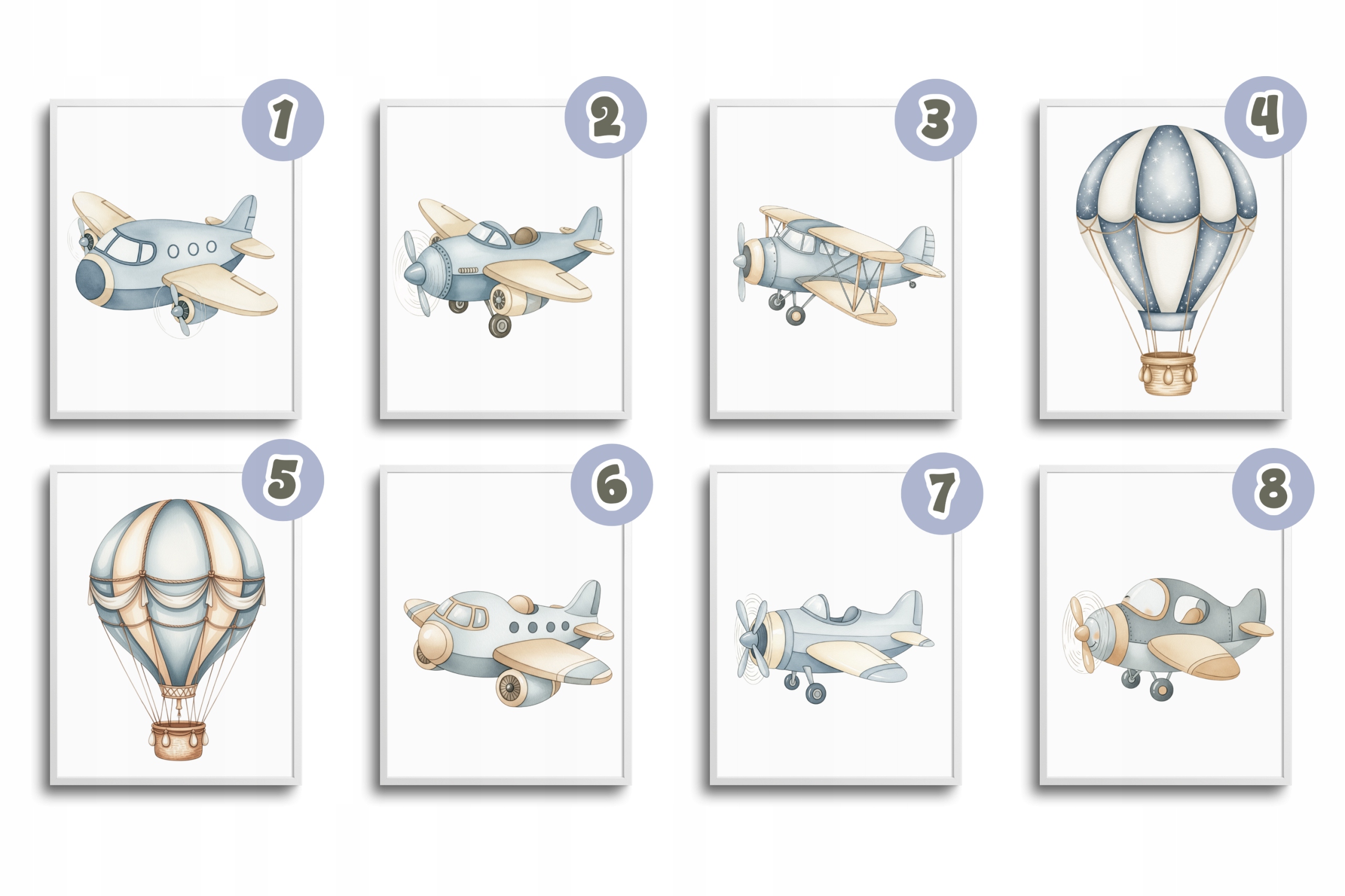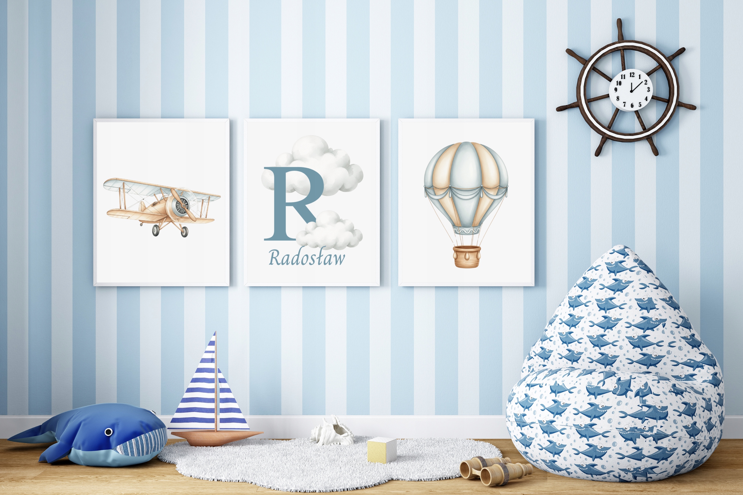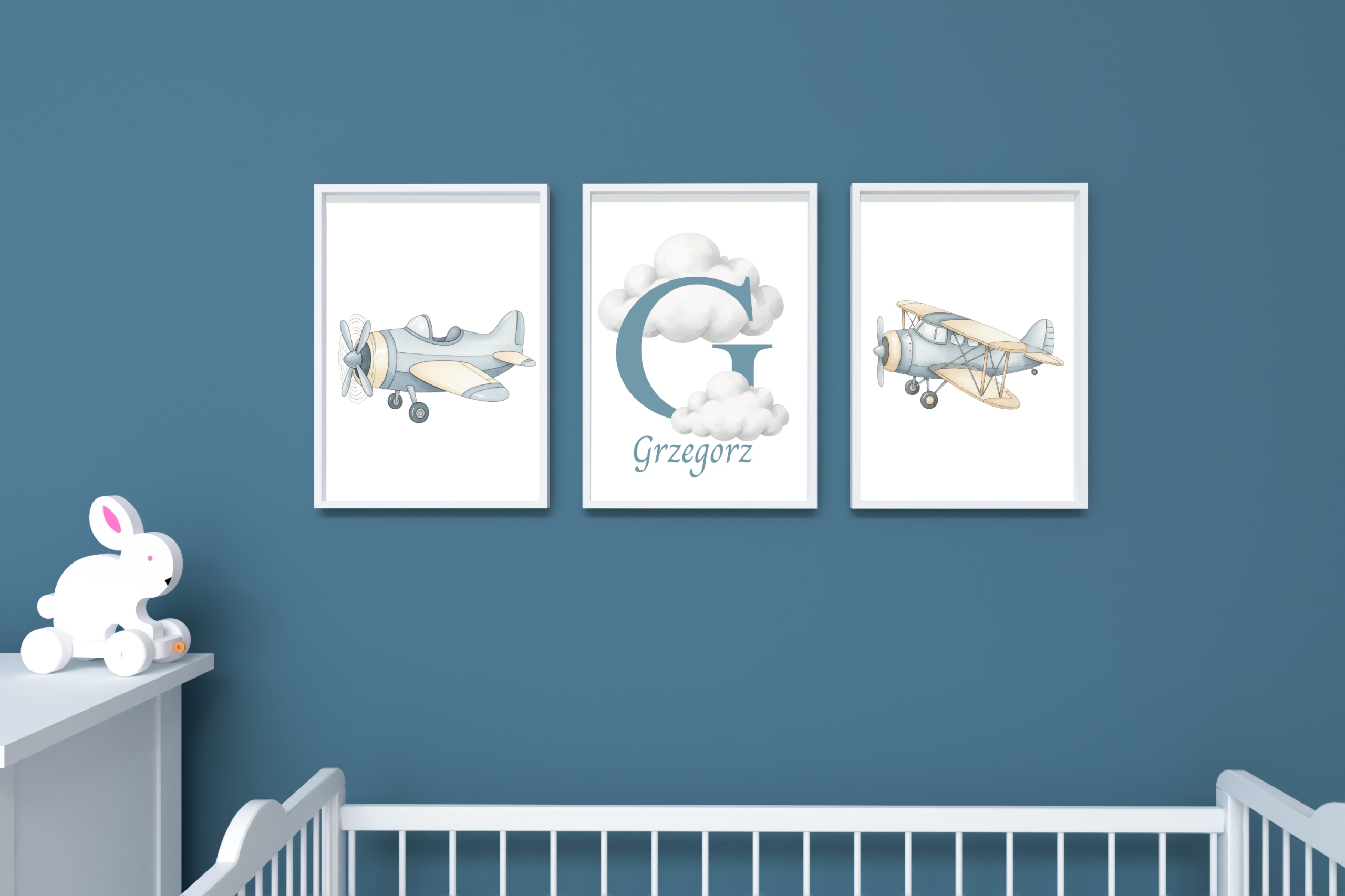 Набір з 3 постерів формату А3 Літак Персоналізація імені дитини Кімната хлопчика