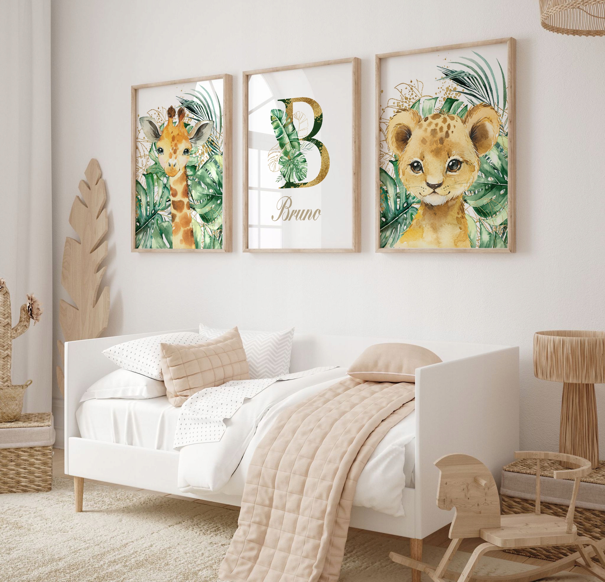 Набір з 3 постерів формату А3 Сафарі тварини Ім'я дитини
