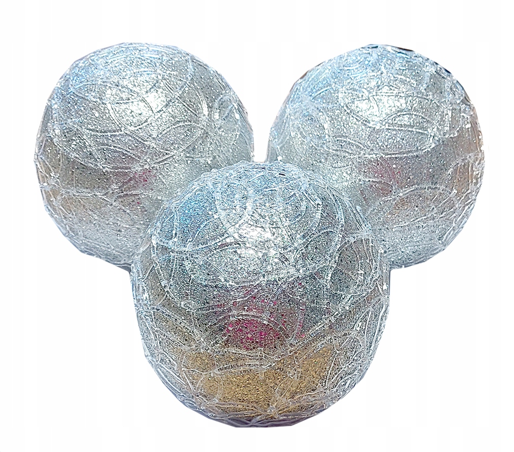 Куля виготовлена з пластику, багато прикрашена золотими частинками та прозорою опліткою.