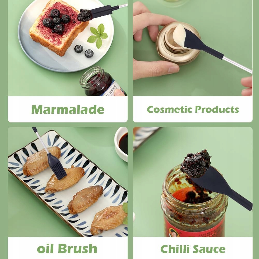 Матеріали харчових продуктів: невеликий силіконовий шпатель виготовлений з високоякісного харчового силікону. Цілком формується, з гладкими, багаторазовими та надійними властивостями. Інтегрована безшовна конструкція не залишає місця для росту бактерій