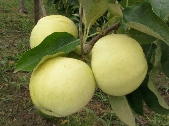 Плоди- середнього розміру, кулясті, злегка ребристі, біло-жовтого кольору.Злегка ребристі.Від зеленувато-білого до білого м'якоть дуже ніжна, ароматна, кислувата, смачна.