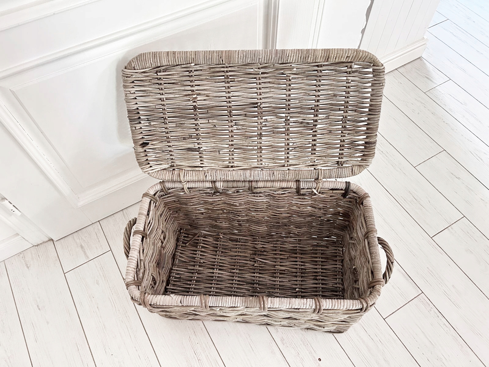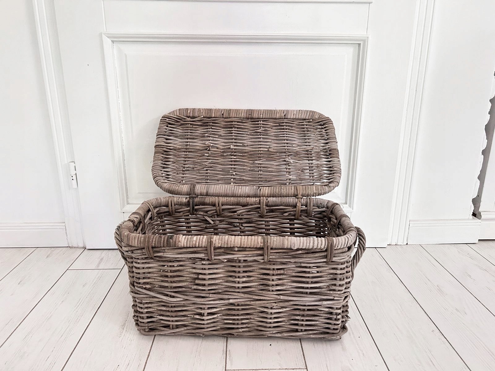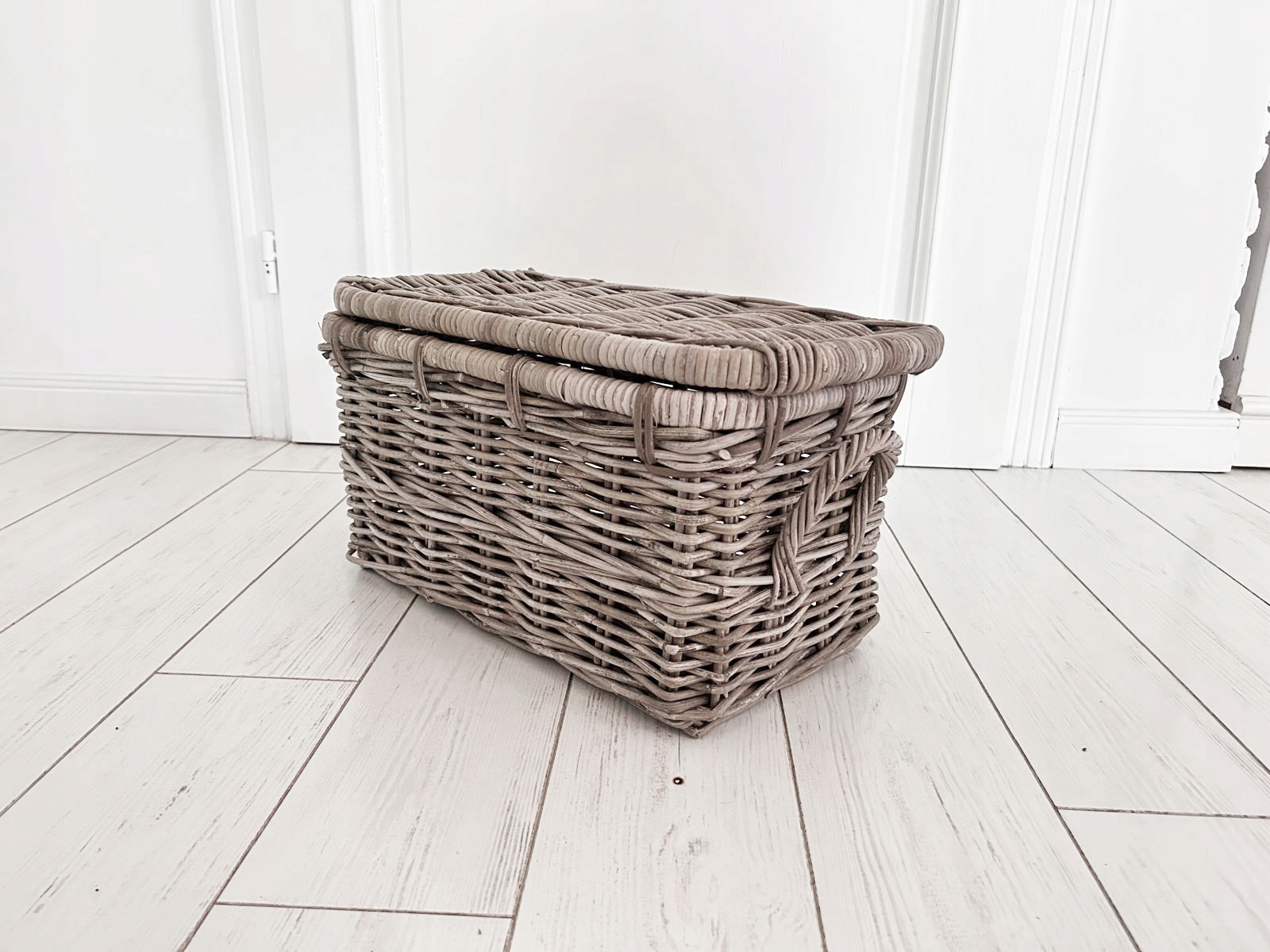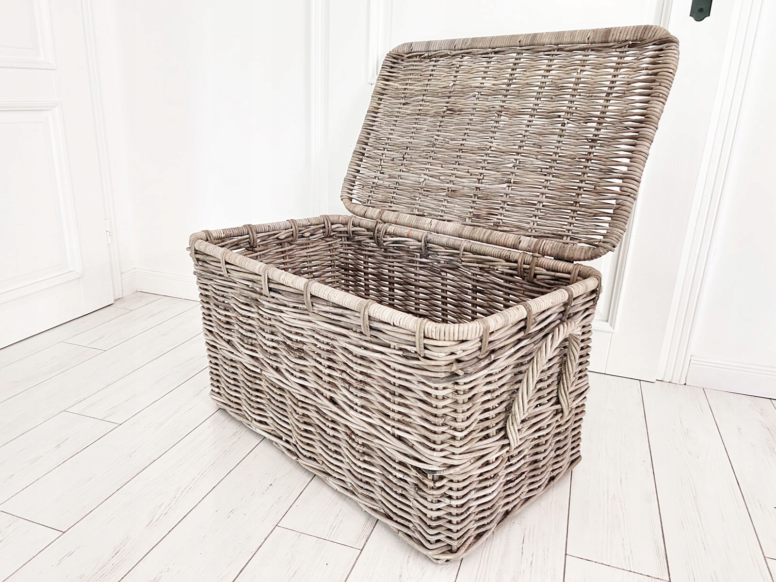Набір трьох сільських скринь, Гемптонські кружки, виготовлені з ротанга з кришкою. Він ідеально підходить для зберігання ковдр, подушок, звичайно, його також можна використовувати для інших цілей. Він також ідеально знайдеться як багажник для іграшок у дитячій кімнаті або як ліжковий стіл у спальні. Зроблено вручну, слід пам’ятати, що це природний продукт, а колір може бути трохи . Видовище.