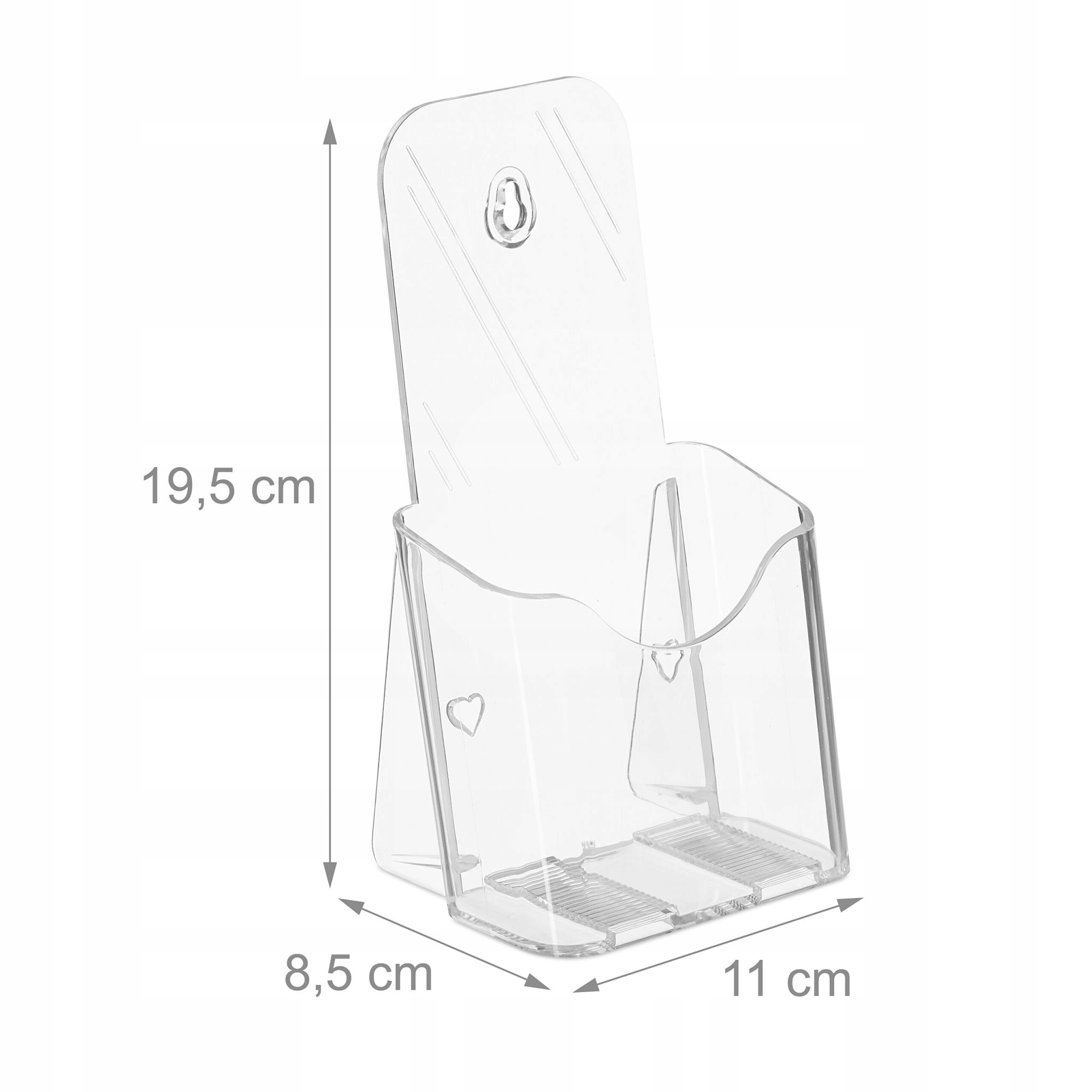 Прозорі підставки для листівки дозволяють ефективно представити листівки, брошури та папки на столах та лічильниках або на стіні. Особливо на ярмарках та заходах, але також у залі очікування або на прийомі, ви можете використовувати стійку для листівки, щоб представити свої рекламні матеріали таким чином, як видно для клієнтів. Набір з 3 -х брошури виготовлений з довговічного пластику і підходить для листівки у форматі DIN.