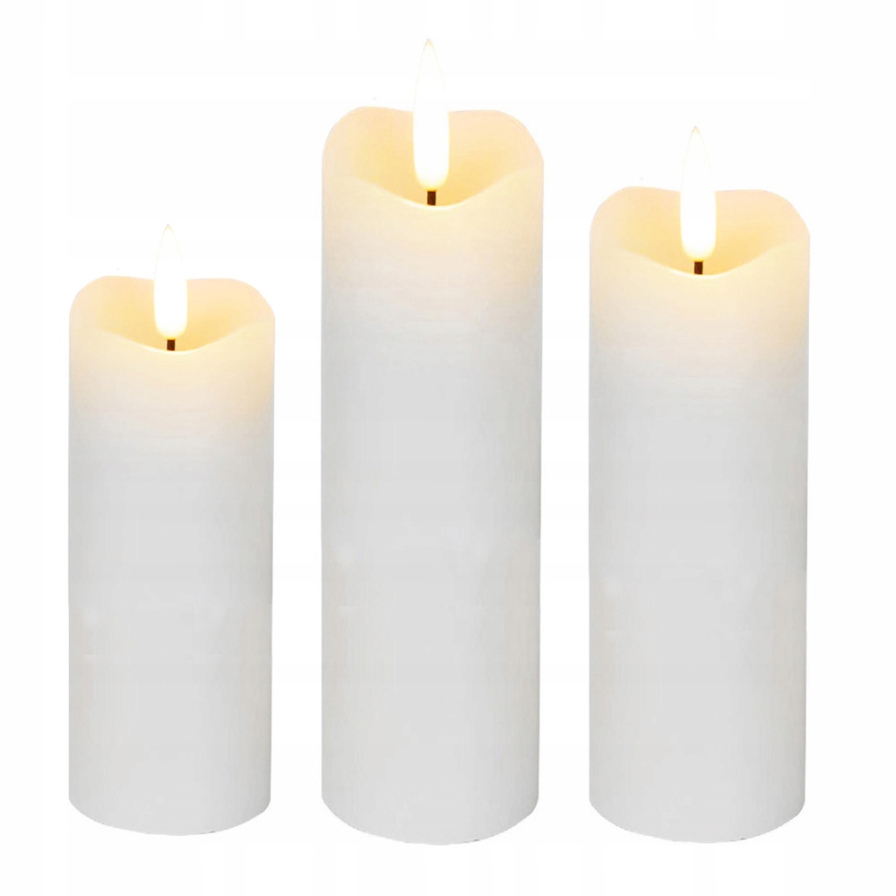 Набір з 3 декоративних свічок з постійним миготливим гнотом, що імітує справжнє полум'я за допомогою світлодіода. Свічки можна використовувати як вставки для традиційних свічок. Вони служать набагато довше звичайних вставок і вітростійкі, що є додатковою перевагою.