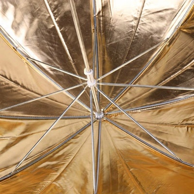 ✔ Золота світловідбиваюча парасолька відбиває та зігріває світло, спрямоване на фотографований об’єкт, усуваючи тіні. Золоте покриття дає ефект, що нагадує захід або схід сонца. Чорна зовнішня сторона парасольки дозволяє контролювати кількість світла, спрямованого на фотографовану сцену. Чорне покриття утримує світло в плафоні та додатково пригнічує відбите світло, тому небажаних відблисків у рамі не буде.