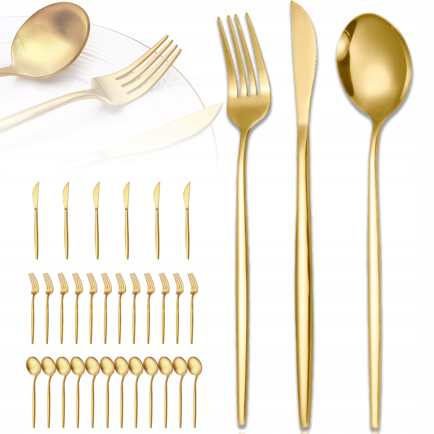 НАБІР З 30 ЗОЛОТИХ СТОЛОВИХ ПРИБОРІВ З НЕРЖАВІЮЧОЇ СТАЛІ НА 6 ЕЛЕГАНТНИХ ЛЮДЕЙ