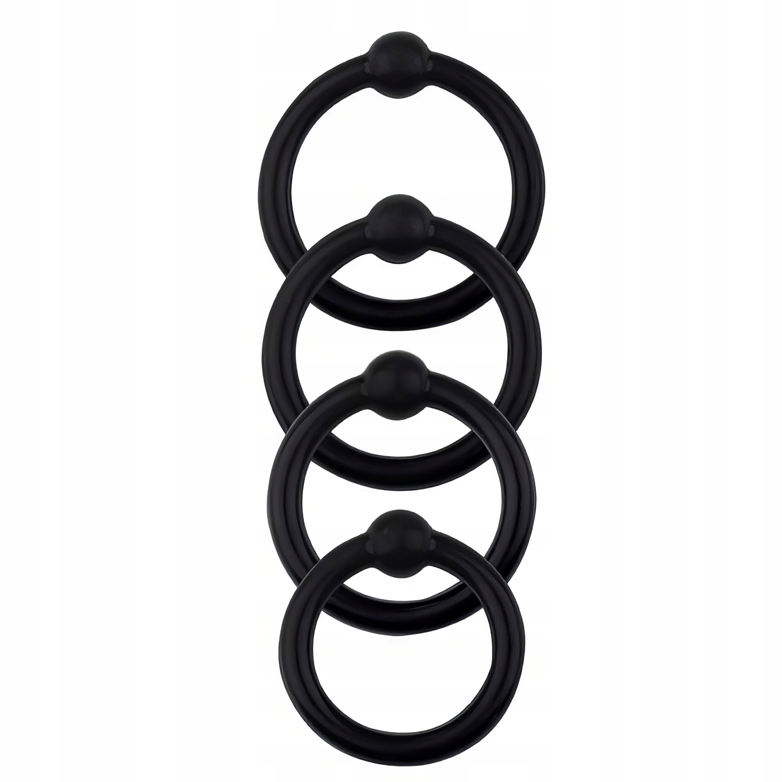 Набір із чотирьох компресійних кілець. Для продовження статевого акту на яєчках і пенісі надягають ерекційні кільця. Після надягання кільця вони регулюють кровообіг, завдяки чому ерекція стає важчою, ніж зазвичай, а еякуляція значно затримується. Кільця мають сферичні виступи, які будуть стимулювати інтимні зони вашого партнера. У наборі 4 розтягуються кільця різного діаметру. Завдяки їм ви і ваш партнер отримаєте масу задоволення і задоволення від тривалого сексу.