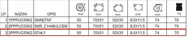 Набір з 4-х коліс fi50 Візок книжкова шафа 4x3PPPUC502K