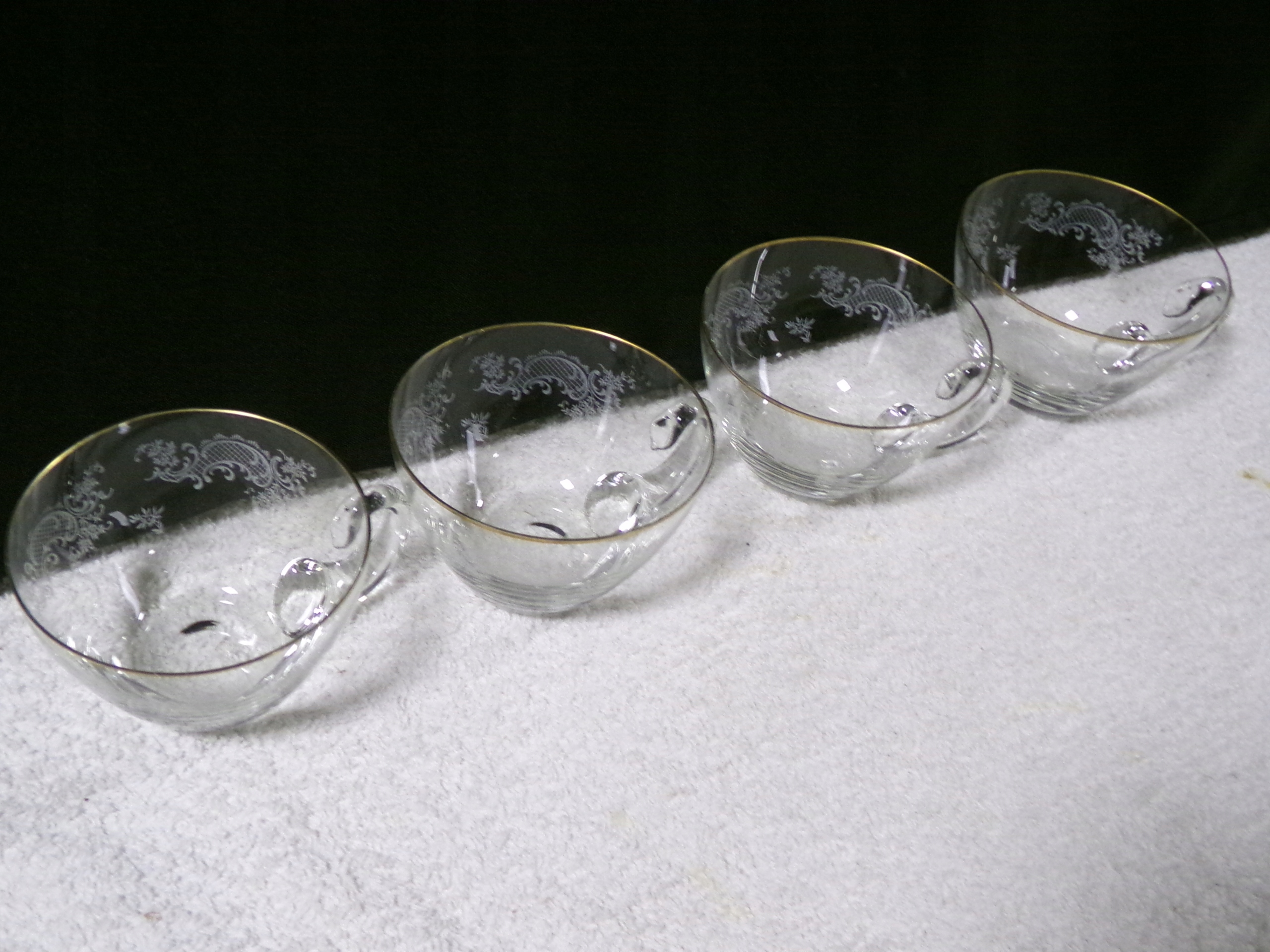 Набір із 4 склянок, висота 6 см, діаметр центру 9,5 см, ємність 200 мл, вага 0,46 кг. Дуже хороший стан, без пошкоджень.