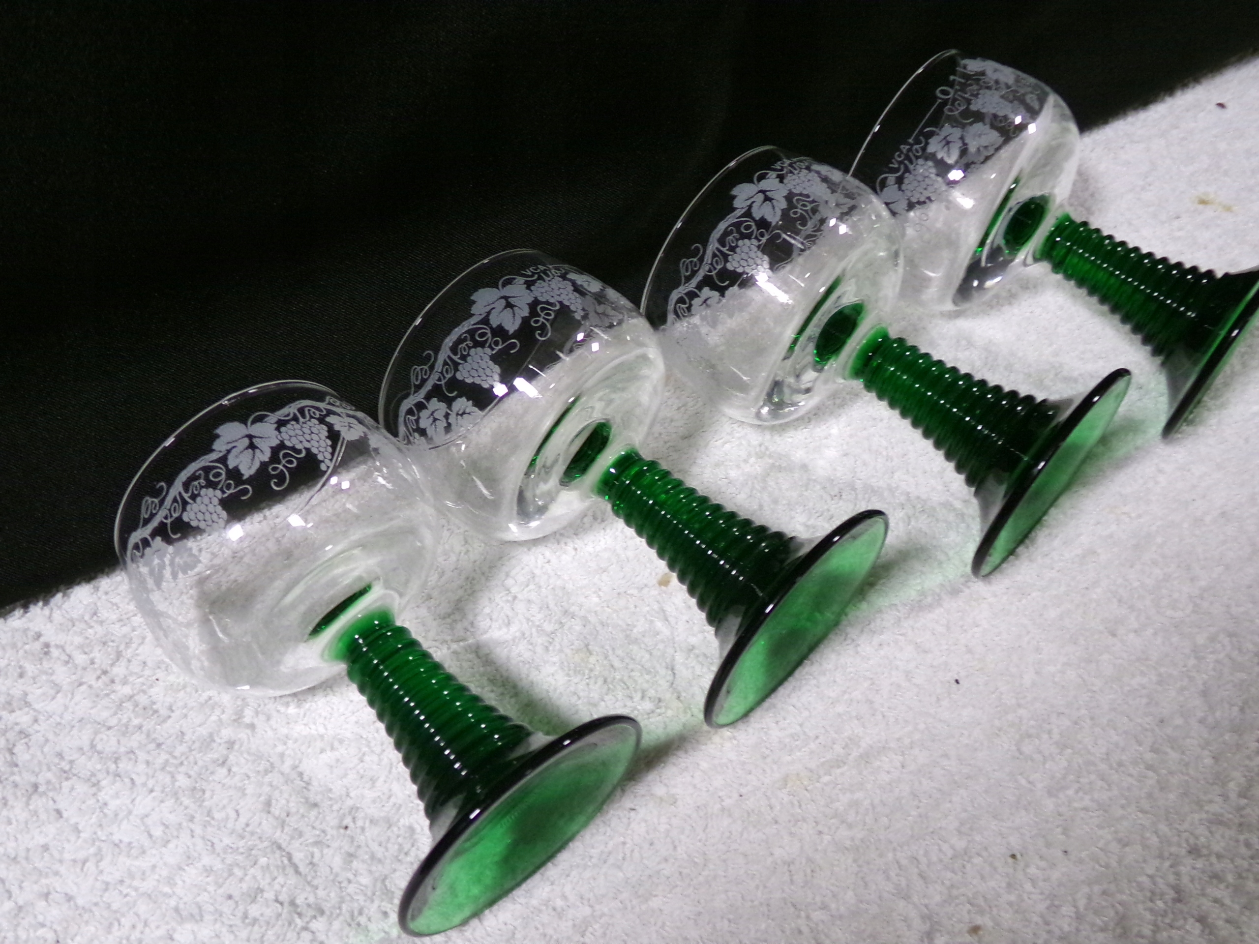 Набір із 4 скляних келихів, висота 11,5 см, діаметр центру 6 см, вага 0,61 кг. Дуже хороший стан, без пошкоджень.