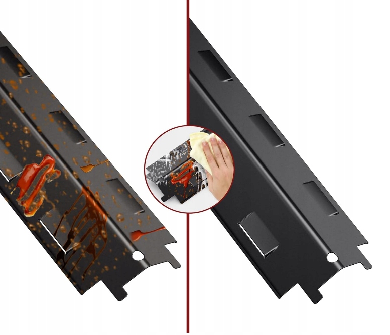 Заміна зношених дефлекторів дозволяє значно продовжити термін служби гриля та знизити ризик виходу з ладу пальника. Гладка поверхня полегшує очищення - просто протріть її після того, як вона охолоне, або вимийте в теплій воді з миючим засобом.