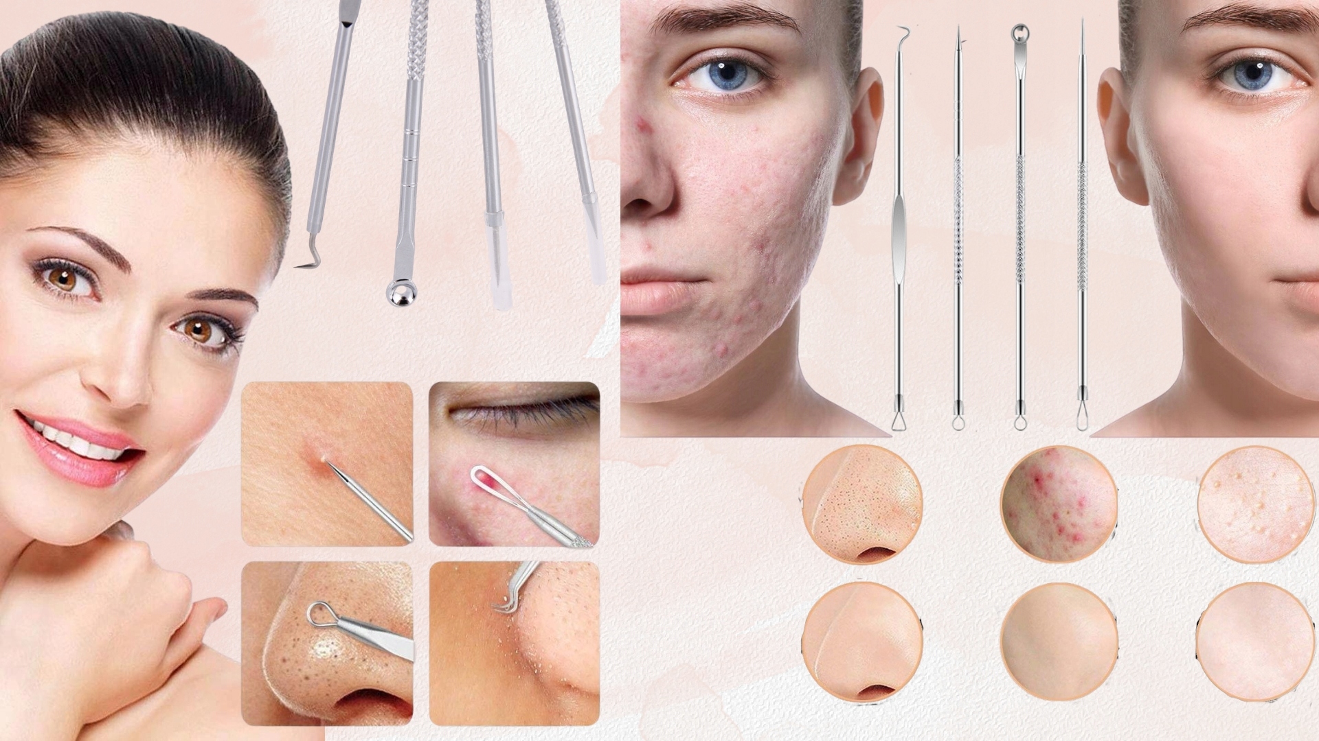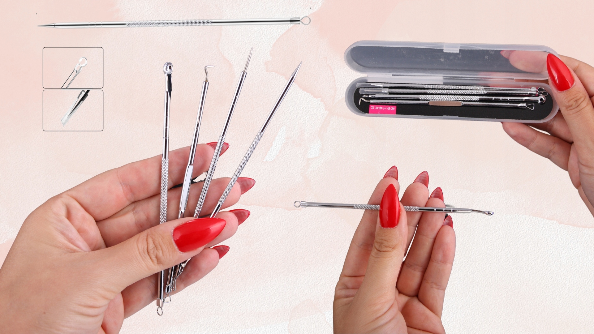 - ✅4 двосторонні ложки для безпечного видалення чорних крапок, вугрів і прищів