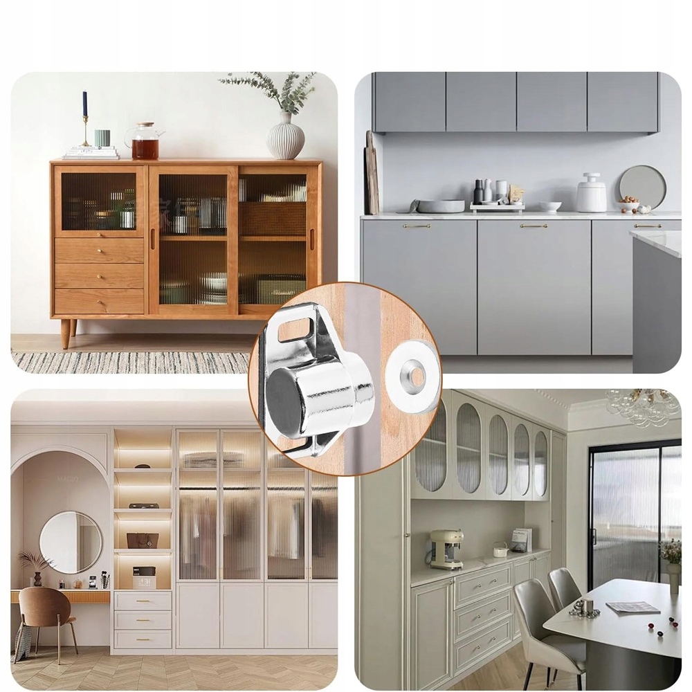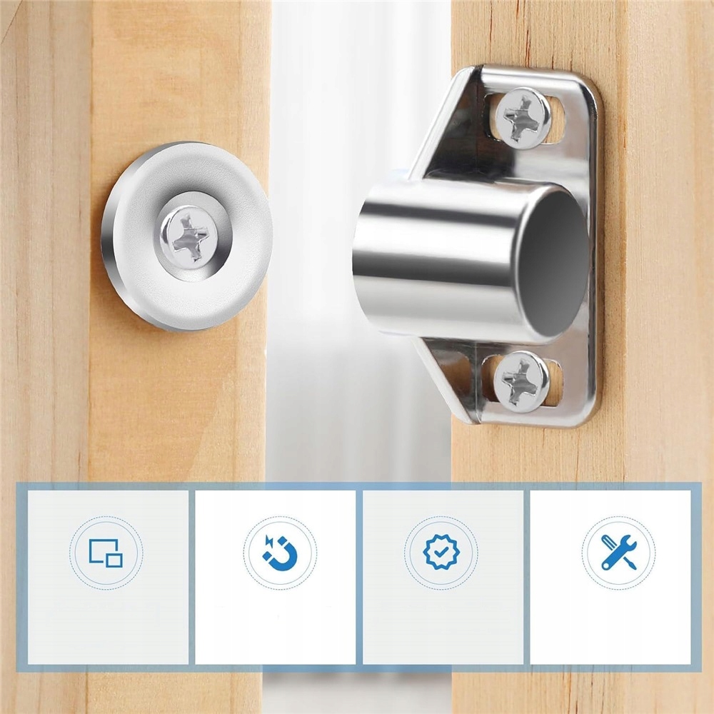 Сильна сила магніту: кожна магнітна засувка оснащена сильним магнітом і металевим ущільнювачем. Поєднання сильного магніту та товстої металевої пластини може забезпечити надійне закриття дверей шафи, ящиків, кришок або дверей.