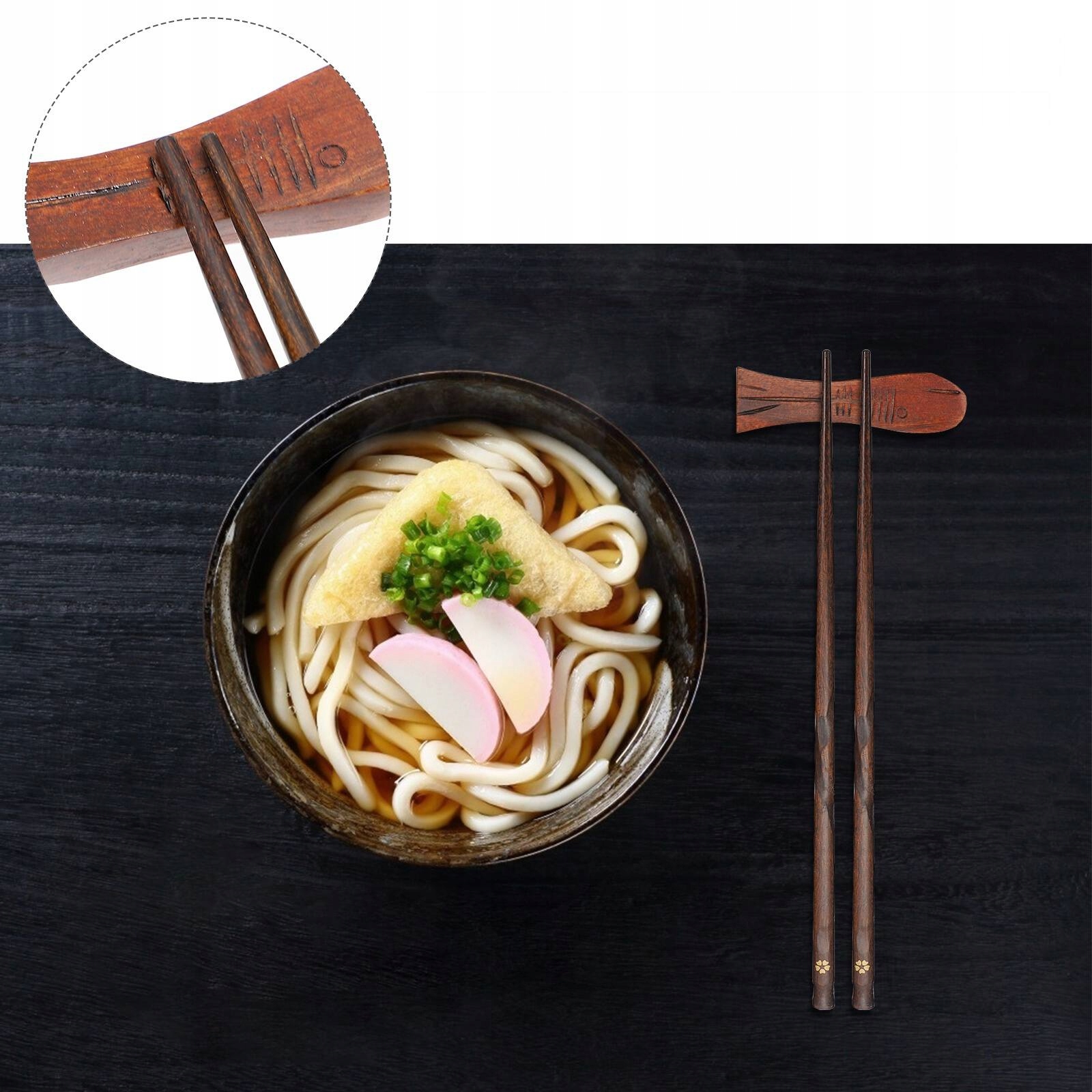 НАБІР З 4 ПАЛИЧОК ДЛЯ СУШІ В ЯПОНСЬКОМУ СТИЛІ З ДЕРЕВ’ЯНИМИ ПІДСТАВКАМИ