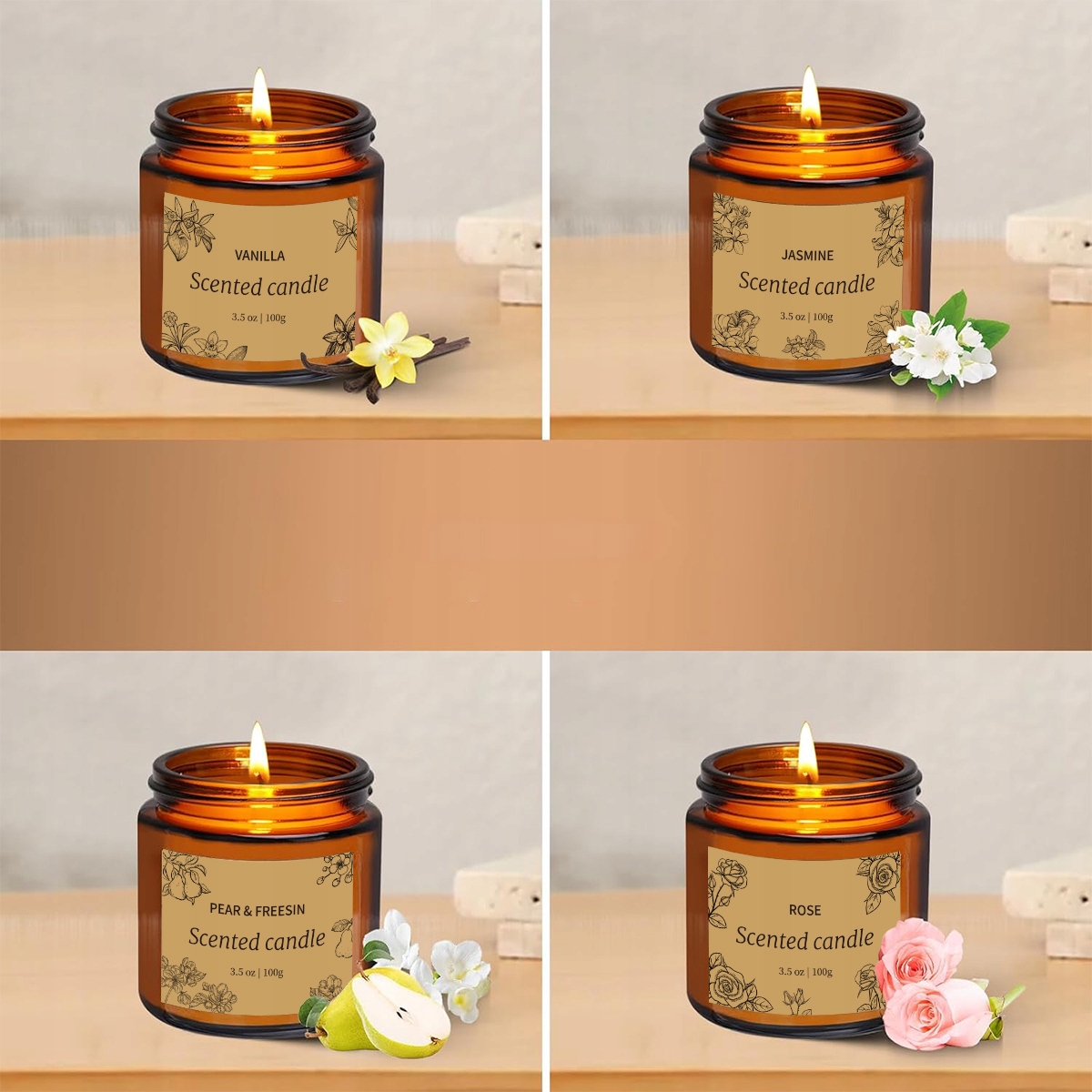♻️Натуральний набір з 4 соєвих свічок по 100 г кожна - Троянда, Ваніль, Жасмин, Груша з фрезією.