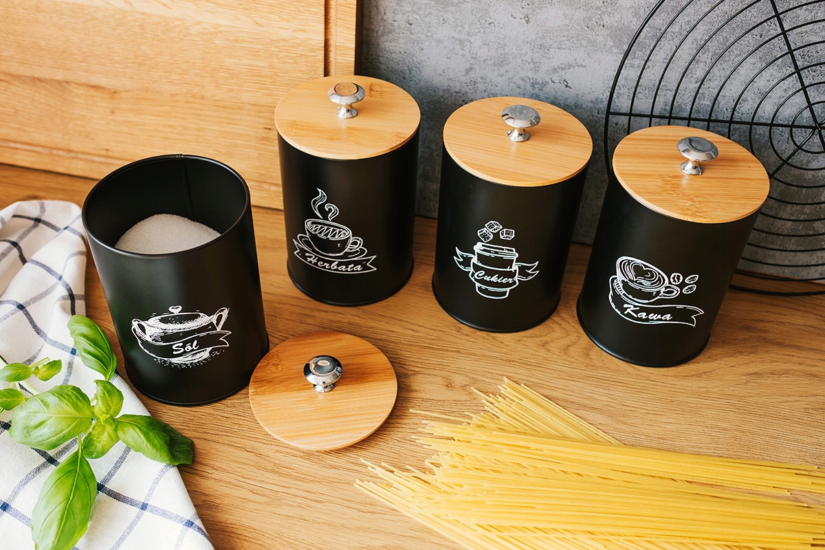 НАБІР З 4 КОНТЕЙНЕРІВ ДЛЯ КАВИ, ЧАЮ, ЦУКРУ, СОЛІ