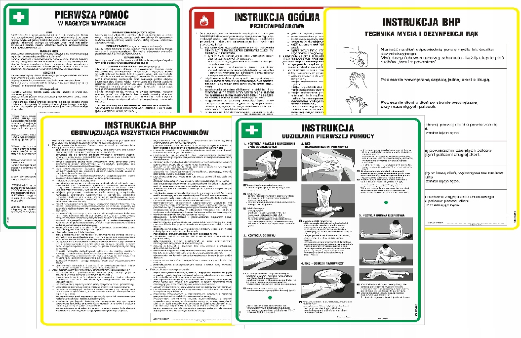 Набір містить 5 основних інструкцій: OHS, PPOŻ процедури та перша допомога. Це забезпечує швидке та ефективне реагування в кризових ситуаціях, зменшуючи паніку. Ідеально підходить для виробничих компаній, офісів, шкіл, складів, ресторанів, медичних установ та громадських установ. Підвищує стандарти безпеки та створює імідж відповідальної компанії, яка піклується про своїх співробітників і клієнтів.