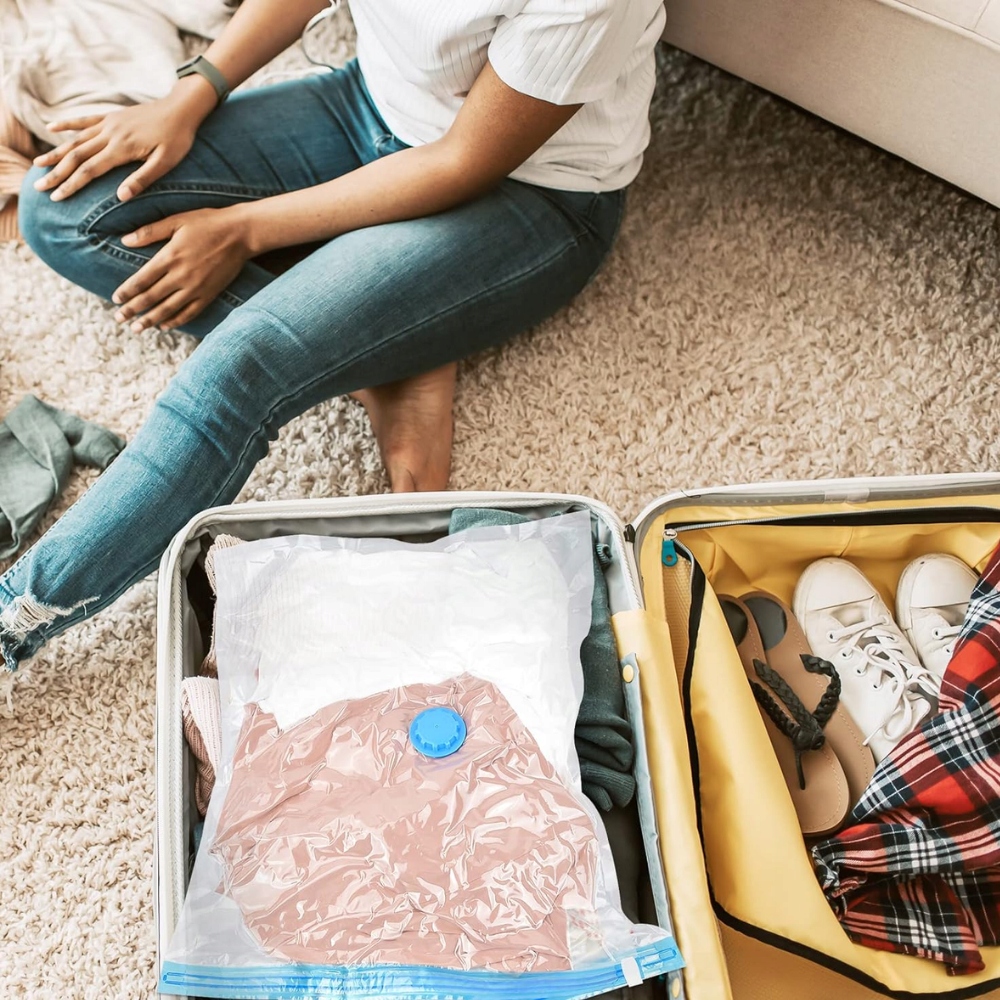 ✅ Варіант вакуумної упаковки з прикріпленим насосом дозволяє істотно заощадити місце в гардеробі. Сумки ідеально підходять для зберігання сезонного одягу, постільної білизни, ковдр та іншого текстилю. Кожен чохол має розміри 80х110 см, що робить їх універсальними та практичними для різних видів одягу та інших речей.