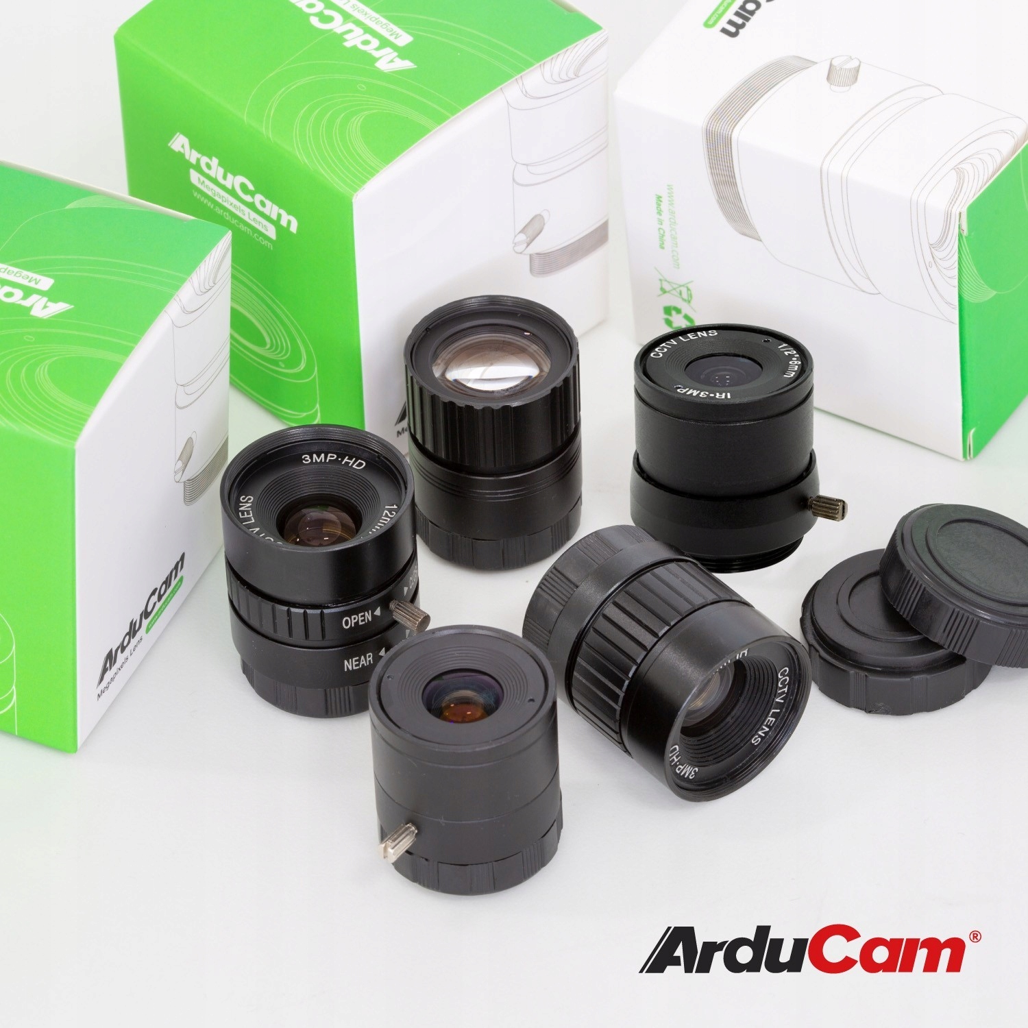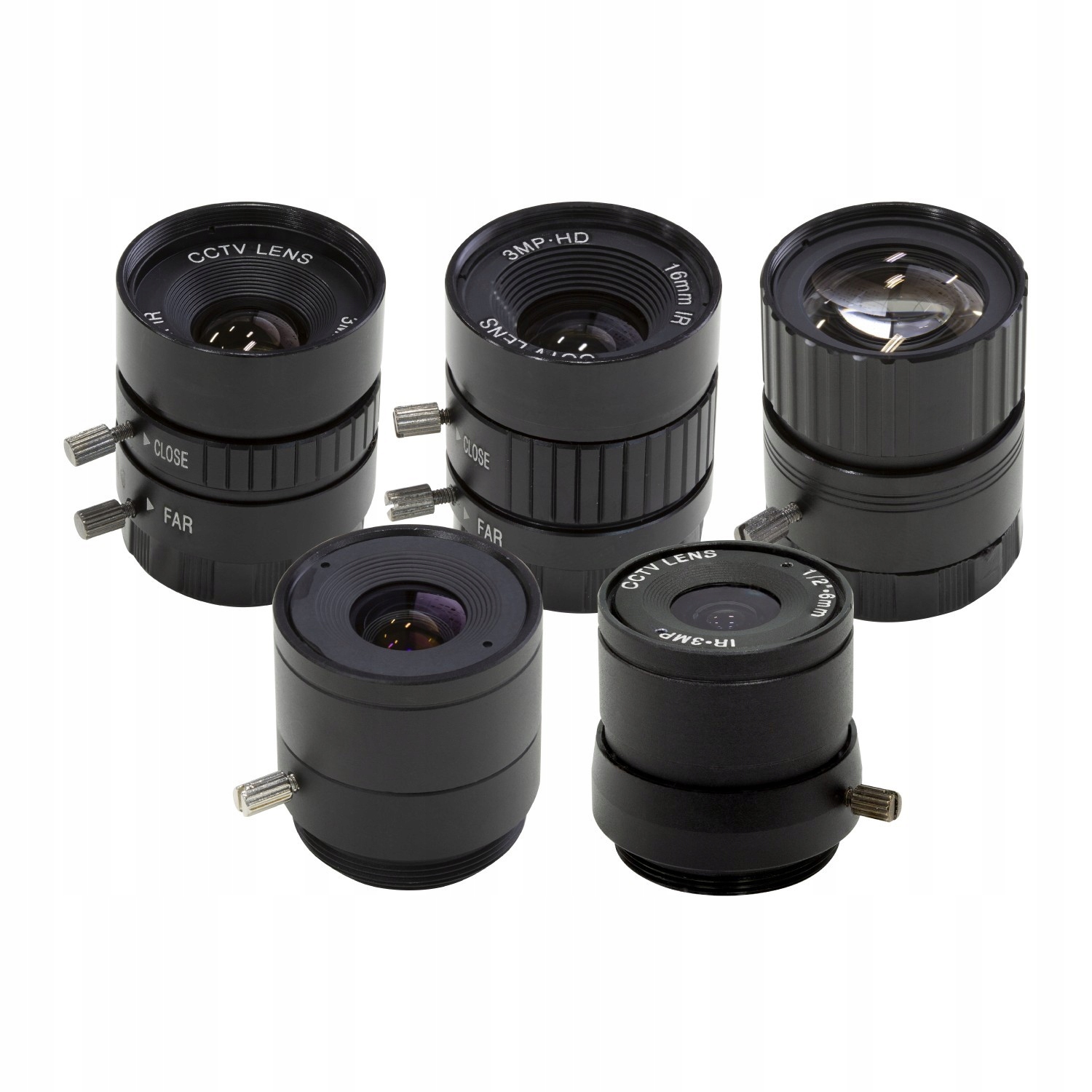 Набір із 5 об’єктивів CS-Mount. Включає широкий вибір лінз із різними кутами огляду (14°/24°/30°/50°/65°) і фокусною відстанню (25 мм/16 мм/12 мм/8 мм/6 мм). Всі об'єктиви мають ручне фокусування, а 3 з них також мають регульовану діафрагму. Об'єктиви, призначені для роботи з камерою Raspberry Pi HQ.