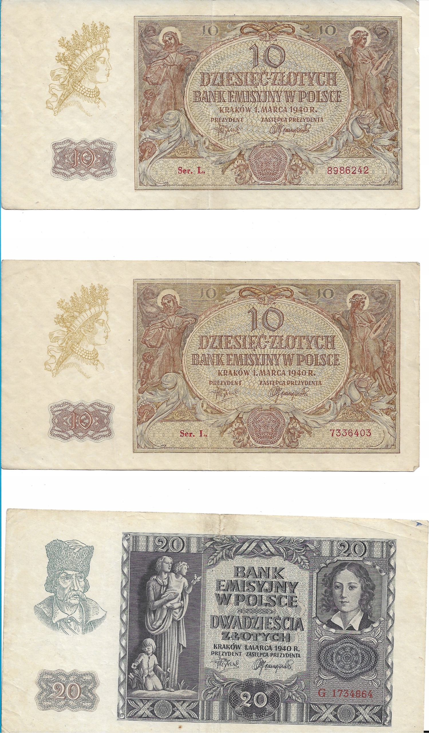 20 PLN серії I: g 1734864 з 1940 р.
