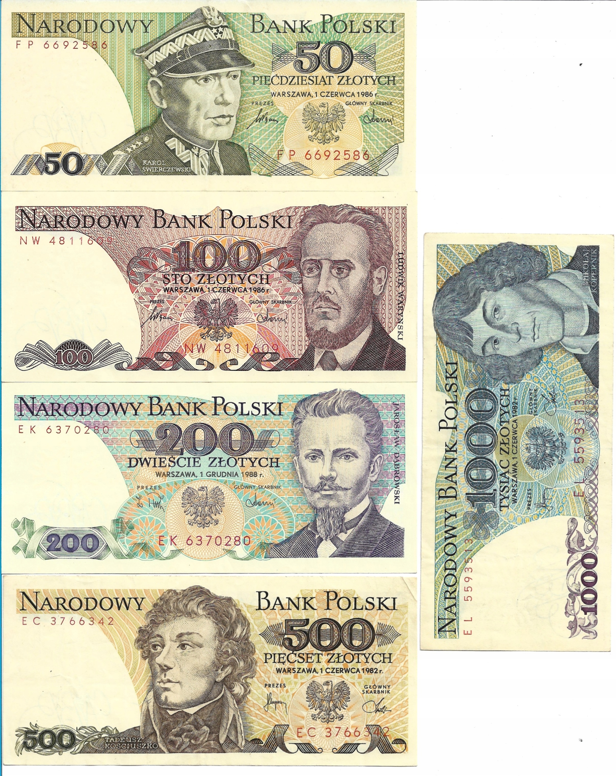 Набір з 5 польських банкнот з Республіки польської народної республіки 1982-1988 рр. RW